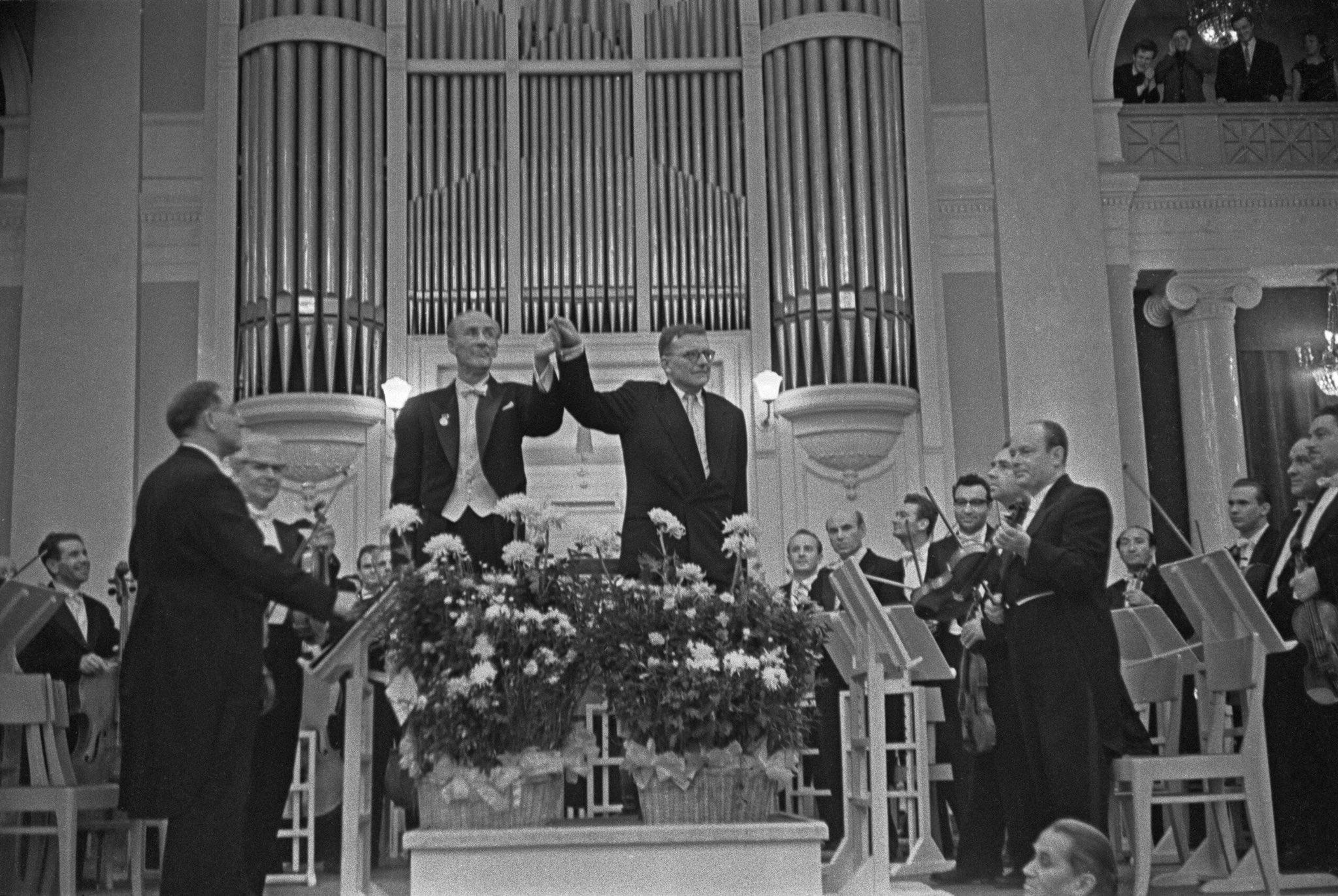 Е.А.Мравинский, И.И.Соллертинский, Д.Д.Шостакович