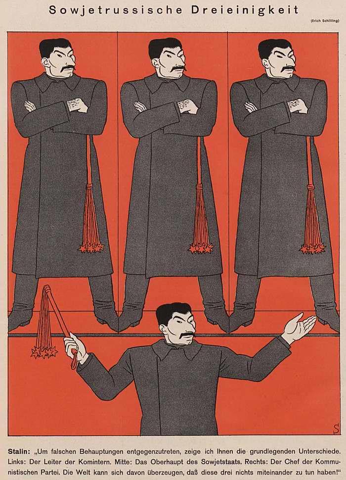 Левый является руководителем Коминтерна, средний - главой советского государства, а тот, что справа, руководит коммунистической партией.