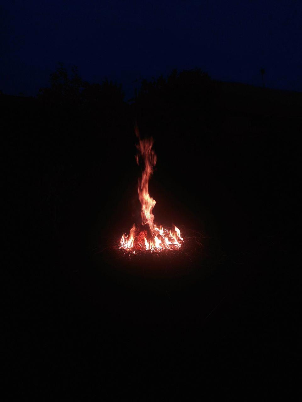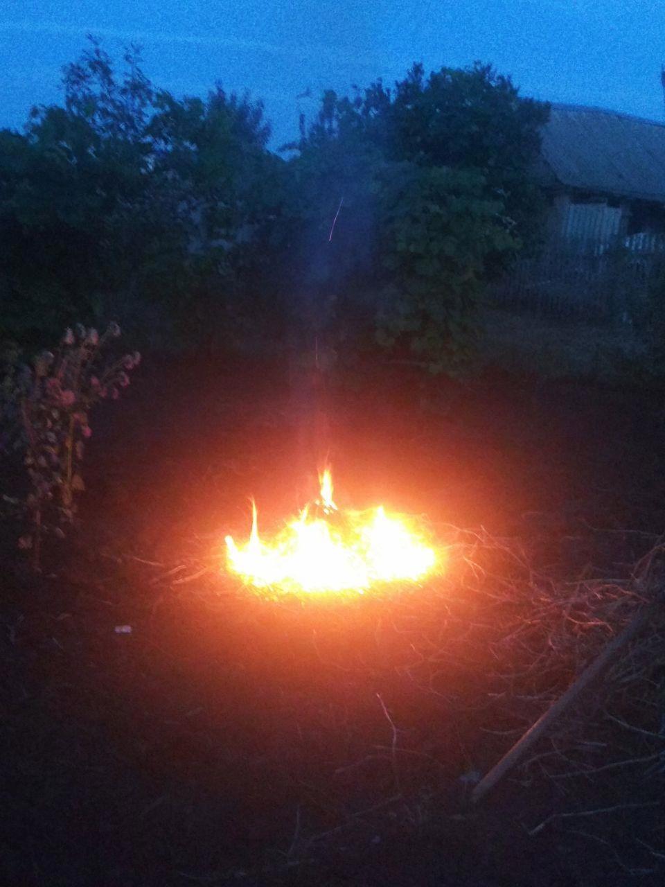 И, как только покончили с картошкой, я согребла ботву и зажгла костерочек. Теперь все чистенько и красивенько.