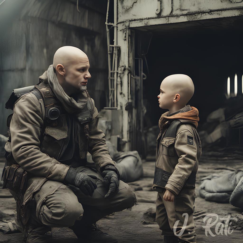 Мирай подошел ближе к учителю, носа коснулся знакомый запах песка и зноя. Заглянув в текст, мальчишка попытался разобраться в крупном почерке. Это оказалось не сложно, постепенно строки сложились в историю одного человека, что вел дневник. Много сотен лет назад люди, в попытке спастись от очередной войны, ушли под землю. А когда вышли на поверхность то обнаружили…, да ничего они не обнаружили. Пустыня захватила землю, выжившие спрятались в городах, но и эти жалкие остатки человечества нещадно губили мутации и болезни. Кровь людей чернела, вместе с этим их покидал разум, оставалось лишь глухое, животное желание выжить любой ценой. Таких вышвыривали в пустыню на корм монстрам. Но монстрами стали именно они, падальщики заполонили выжженные, никому не нужные территории вокруг городов. Потомки, тех, кто укрылся в бункере бросили все силы на поиски средств против болезни, но ожидаемо не преуспели в этом, а потому вновь закрылись за тяжелой дверью. Так и вымерли в своей чистоте, детей становилось все меньше, пока последний из них не остался один. От скуки одиночества он спасался рассуждениями, а что же лучше - свобода или безопасность? Тайну его решения дневник не раскрывал. Останков в бункере не обнаружилось. Человек либо вышел, закрыв за собой дверь и уже не вернулся. Либо так и умер в стерильной тишине, а роботы уборщики утилизировали тело. Остались лишь записи и очередная насмешка над человечеством - автономно функционирующий опустевший бункер.