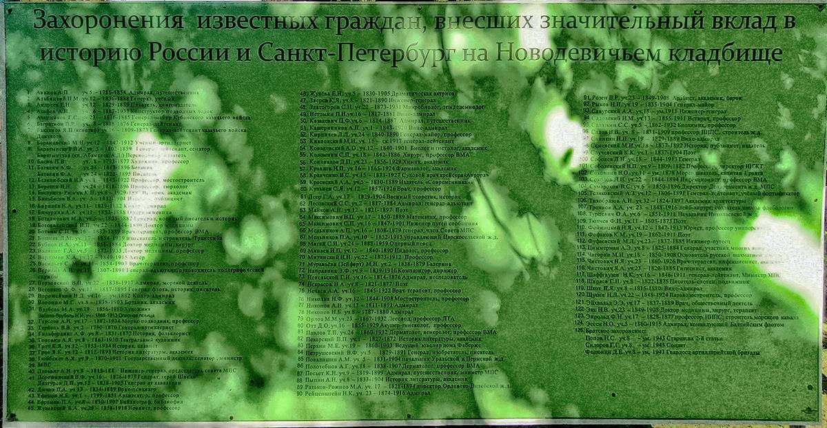 Уверен, то же самое можно понять и по кладбищу. Особенно такому, на котором захоронены известные граждане, внесшие значительный вклад в историю России и Санкт-Петербурга, – как признается сама дирекция этого кладбища (годами не замечающая опечатки на этом своем информационном щите).