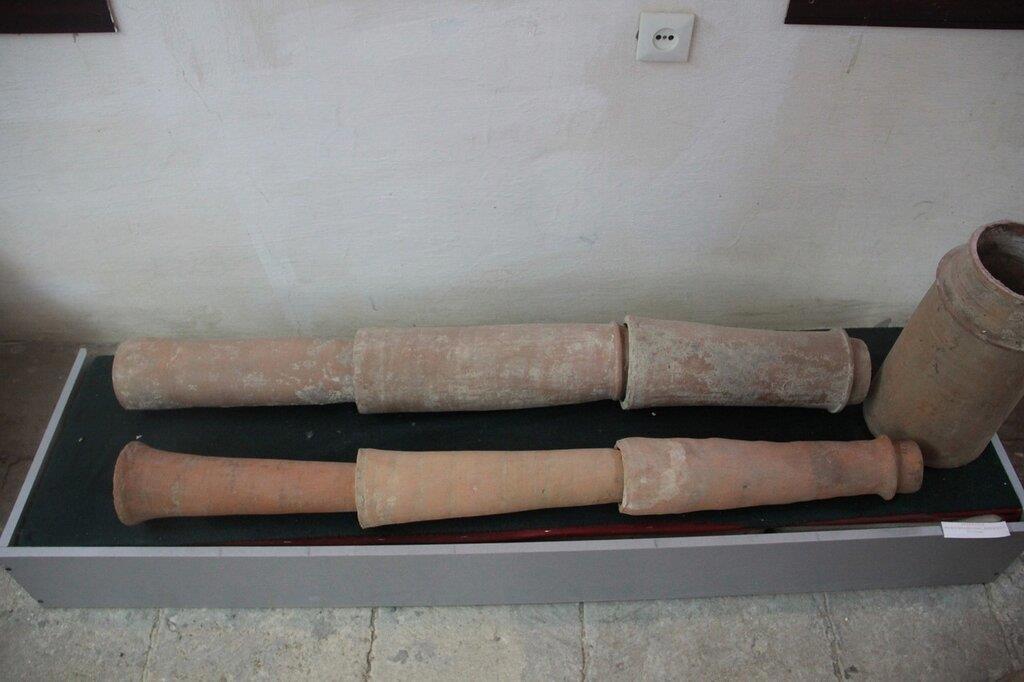 Вода к хранилищам и потребителям поступала из родников по водопроводам, сложенным из керамических труб, образцы которых сейчас можно увидеть в местном музее: