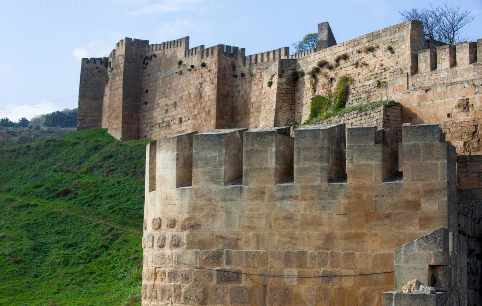 На фото сразу бросается в глаза, что форма крепости какая-то нелогичная. Да что там – просто бестолковая. И это даже никак нельзя оправдать какими-то особенностями ландшафта. Ещё на фото неплохо заметны в нижней части снимка начало обоих стен, уходящих к морю. Но всё же ясно, что взять такую твердыню приступом очень непросто. Скажу сразу, если использовать осаду, то шансов будет ещё меньше. Раньше дела обстояли ещё хуже. Вот такой рисунок оставили нам те, кто видел весь комплекс во времена, когда он ещё был в силе: