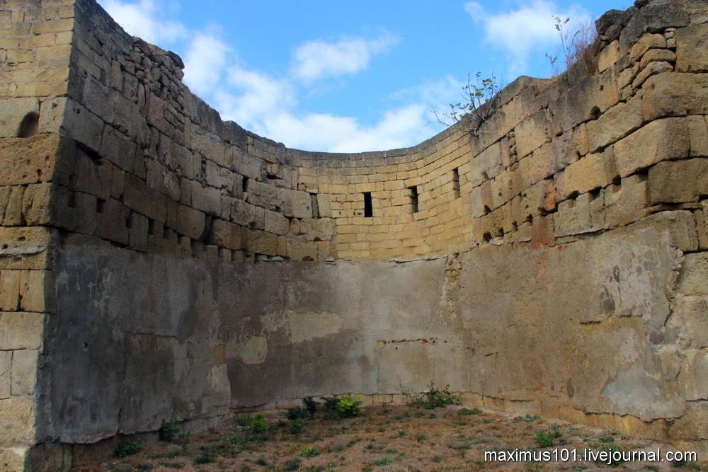 А тут ещё странные описания из письменных источников, в которых говориться о кладке стен без раствора, но с помощью стальных стержней в сочетании с заливкой свинцом. Фотографий таких элементов я не нашёл, но ведь дыма без огня не бывает. Может ещё не раскопали? Вообще материалы для строительства крепости в разные времена при разных хозяевах было очень много. Соответственно и типов кладки стен тоже много. Специалисты насчитали более 10 разновидностей (замечу – это больше, чем известных хозяев). Кое-какие фотографии я уже показал. Вот ещё несколько. Это внутри крепости: