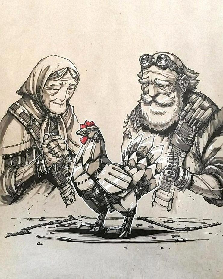 Автор: Павел СкоробогатовХудожник Артемий Мясников превратил героев русских народных сказок в киборгов из постапокалиптичного будущего.