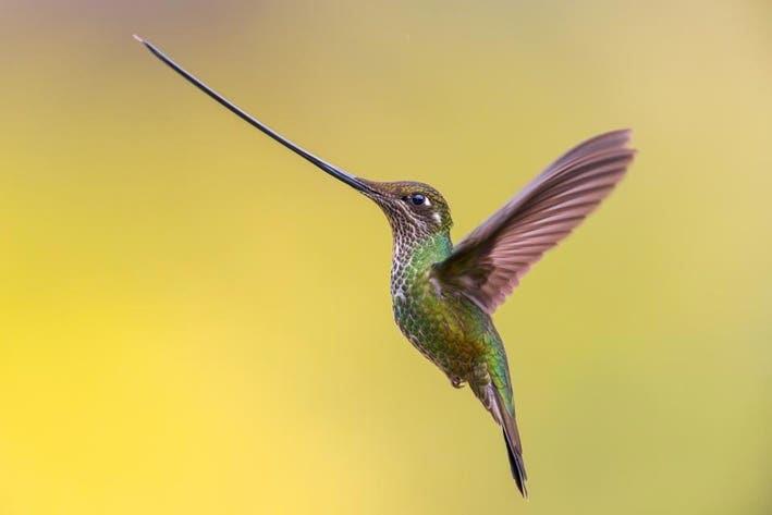 Летящий меч, Птицы в полете. Обладатель золотой награды: Меченосная колибри, Богота, Колумбия.ФОТО: РАФАЭЛЬ АРМАДА, ИСПАНИЯ - ФОТОГРАФ ПТИЦ 2023 ГОДА
