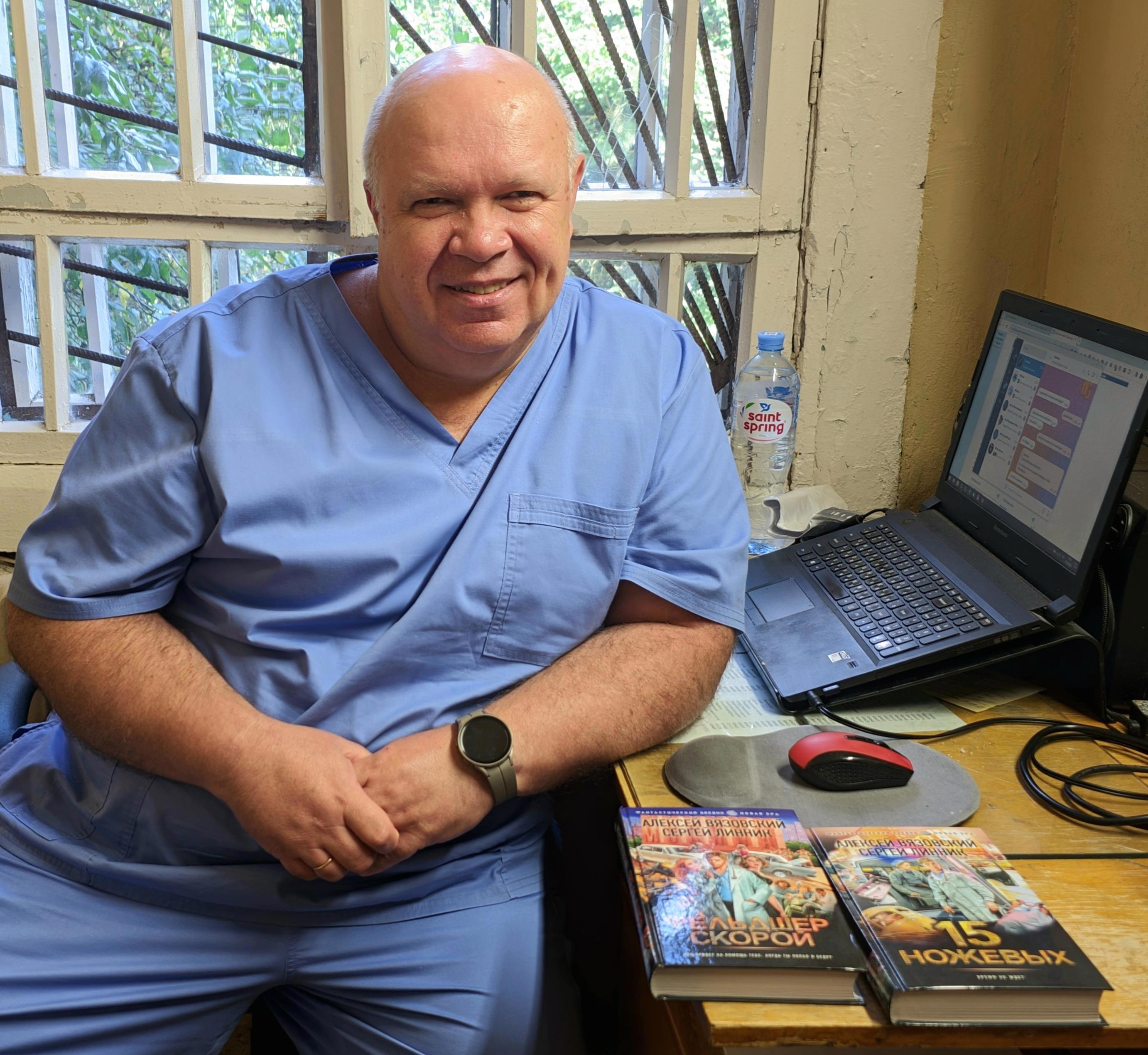 Ну, и пара фоточек в спецодежде в интерьере нашей самой современной и замечательной ординаторской (впечатлительных просьба пройти мимо)))