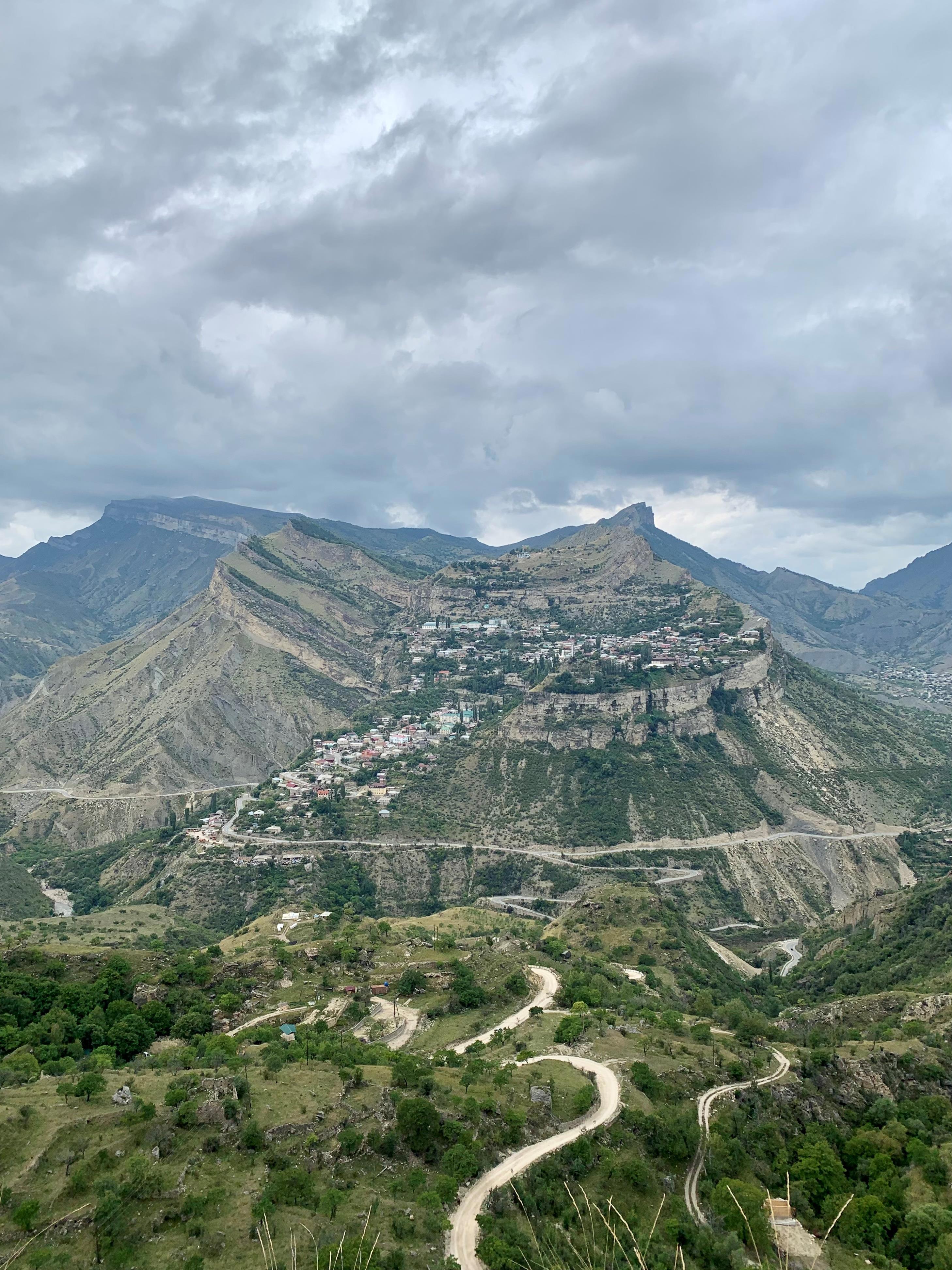 Вид на гору и родное село Гуниб аварца Ахмета в республике Дагестан.