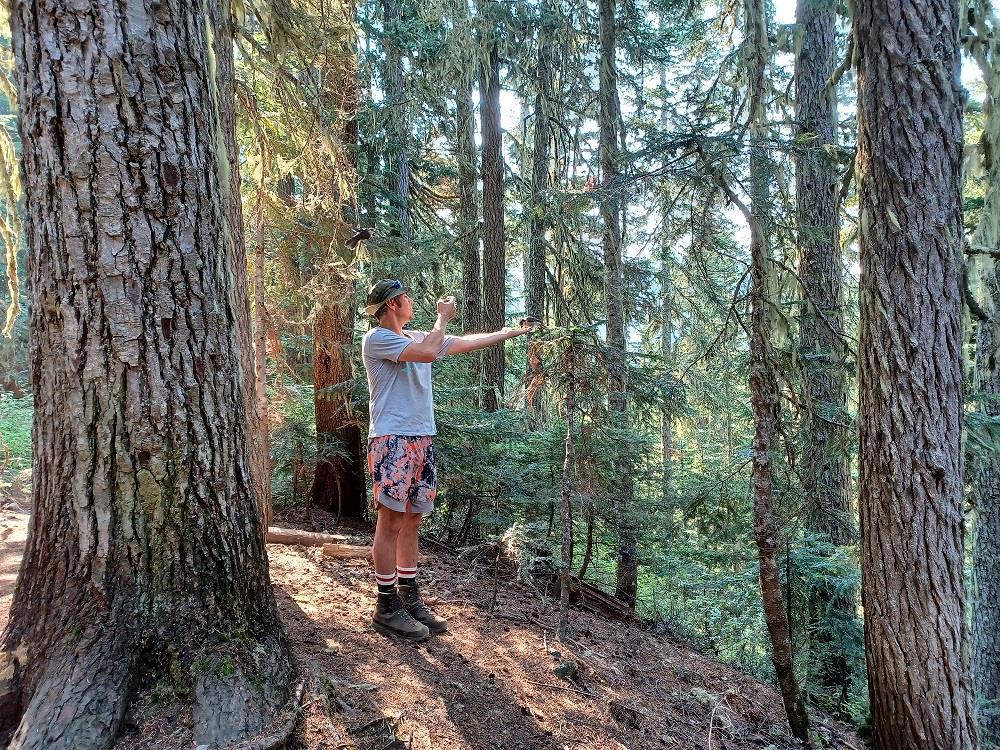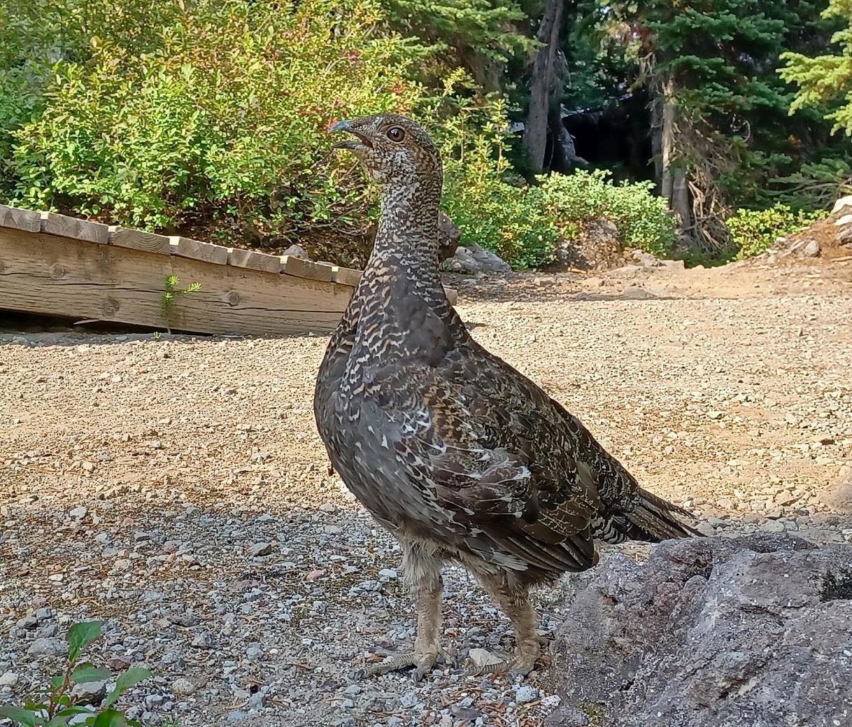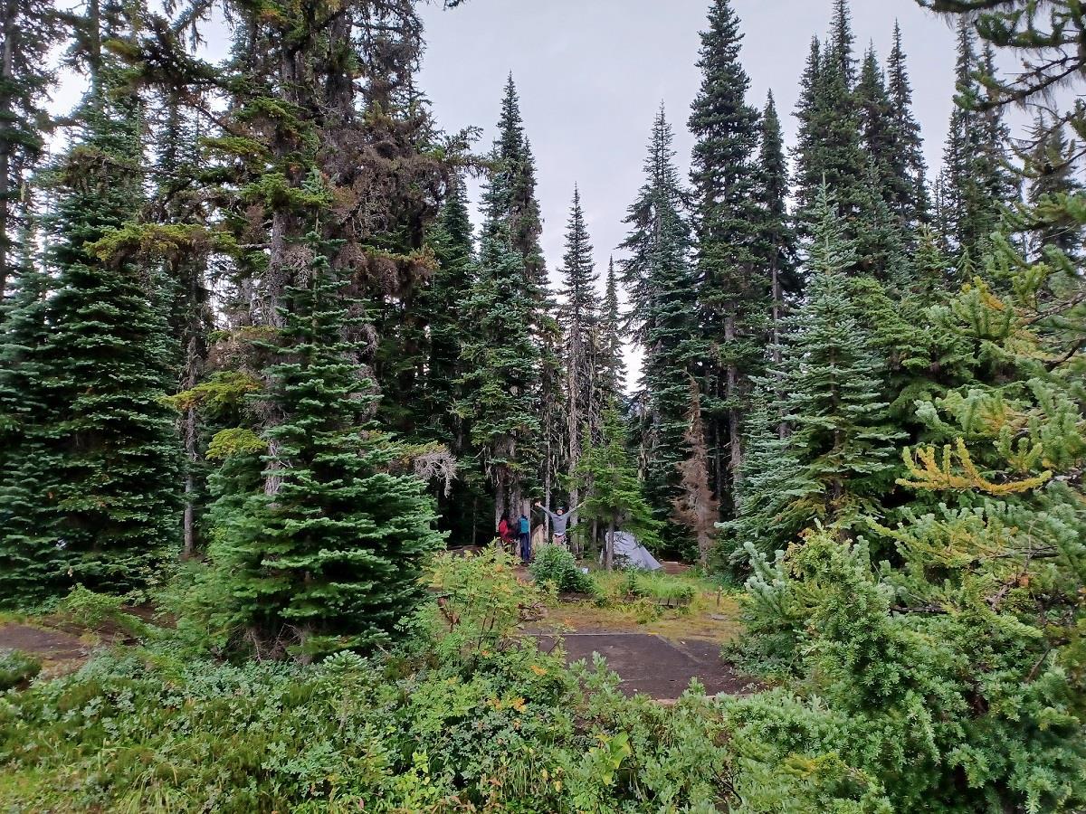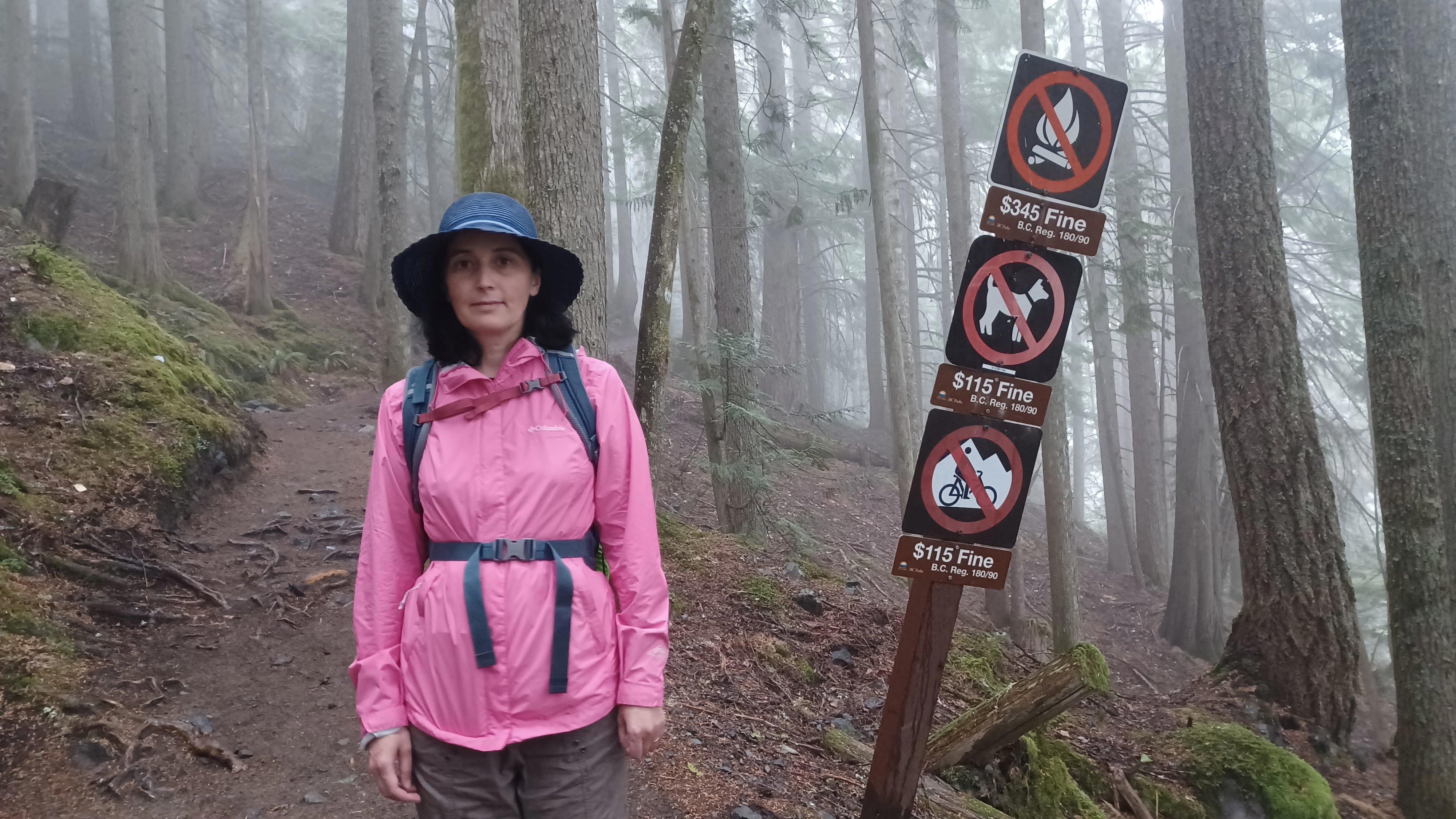 Поход, конечно, утомительный: вверх, вверх, вверх. Большой рюкзак со спальниками, палаткой, печкой, едой и вином (чтобы отметить восхождение) был у мужа, у меня – маленький, но всё равно мы останавливались у каждого удобного бревна, чтобы передохнуть и покормить многочисленных бурундуков и соек.