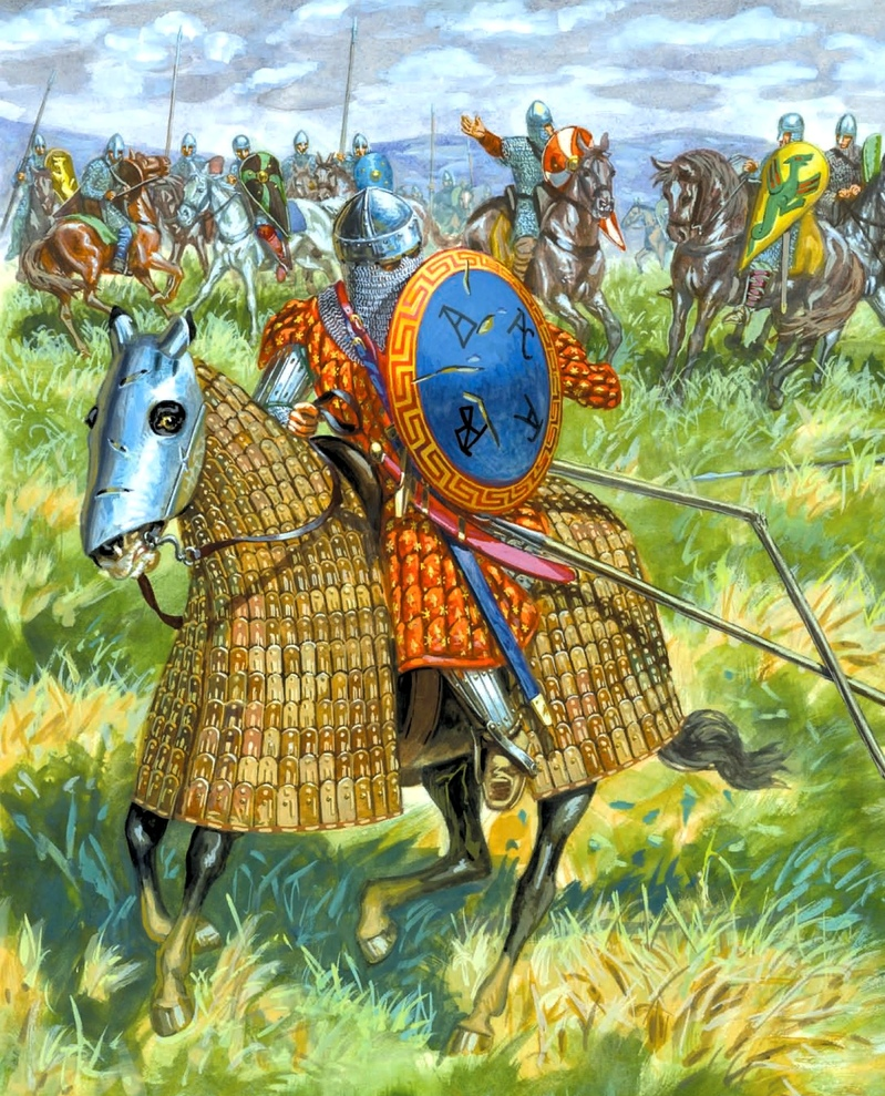 Самые крутые парни из тех, что остались - это византийские катафракты, именуемые клибанофорами. Вот, кстати, и они (правда, вряд ли это 11 век):