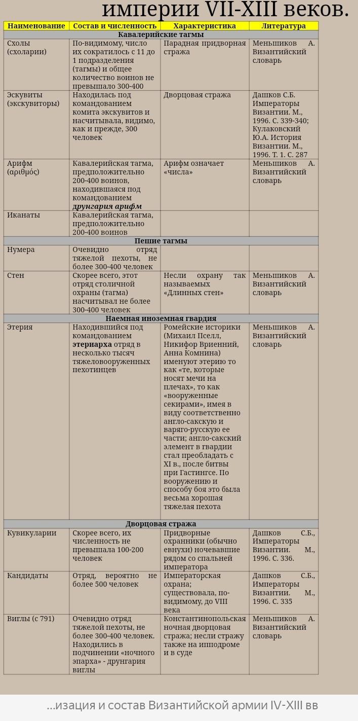 P.S.S. Решил также, что будет интересно разместить материал по списку гвардейских тагм и их численности на период правления Алексея Комнина: