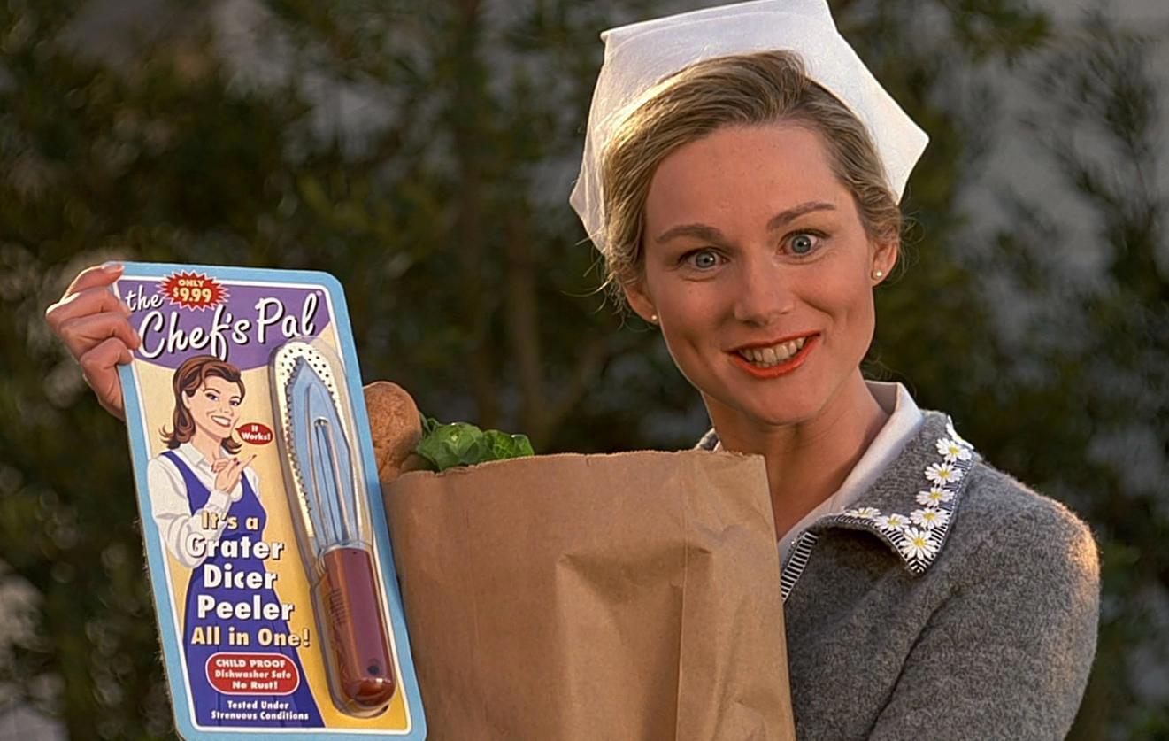Постепенно наш герой осознает, что реальность вокруг него мягко говоря «странная». Кроме того его постоянно одергивают, ставят к плакатам (реклама) и даже его жена иногда произносит вслух какой-то рекламную реплику. Как я понял «Шоу Трумана» – очень прибыльное мероприятие и доходы от рекламы там просто астрономические. Интересным образом Труман узнает, что его жена на самом деле ни капельки его не любит, когда видит на свадебной фотографии, как та скрещивает пальцы.