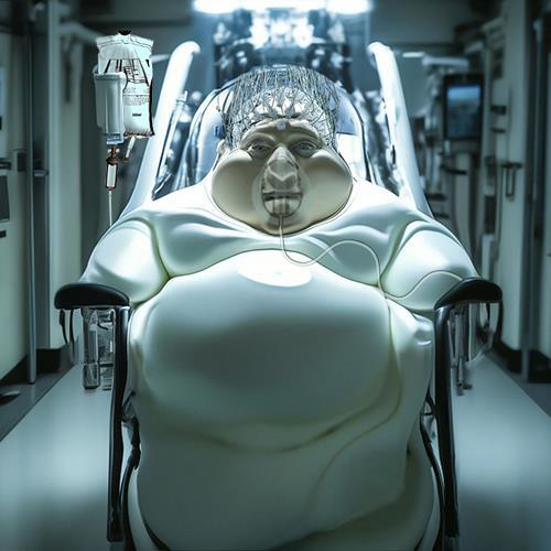Он поднялся и встретился взглядом с уродцем за стеклом. Дэйс сначала не понял, кто это. В центре комнаты стояла кровать с медицинским оборудованием, которые используют для парализованных. Спинка была приподнята, как у кресла и в кровати полулежал маленький человек с раздутой головой. Лицо было, словно размазано по черепу. Узкие глаза, расплющенный нос, и вытянутый в нитку рот, больше похожий на лягушачий. Руки, словно веточки лежали вдоль высохшего тела, но в локтевые вены были подсоединены трубки, которые поддерживали в этом несчастном жизнь. Что это? Риард развернулся и увидел в соседней камере такую же кровать, вот только на ней лежало что-то большое. Узнать в этой горе плоти человека, было затруднительно. Руки и ноги были в глубоких жирных складках, пальцы рук были похожи на толстые сосиски. Он практически весь был опутан трубками, катетеры, капельницы, маска для дыхания. Этот человек ничего не мог самостоятельно, даже дышать.