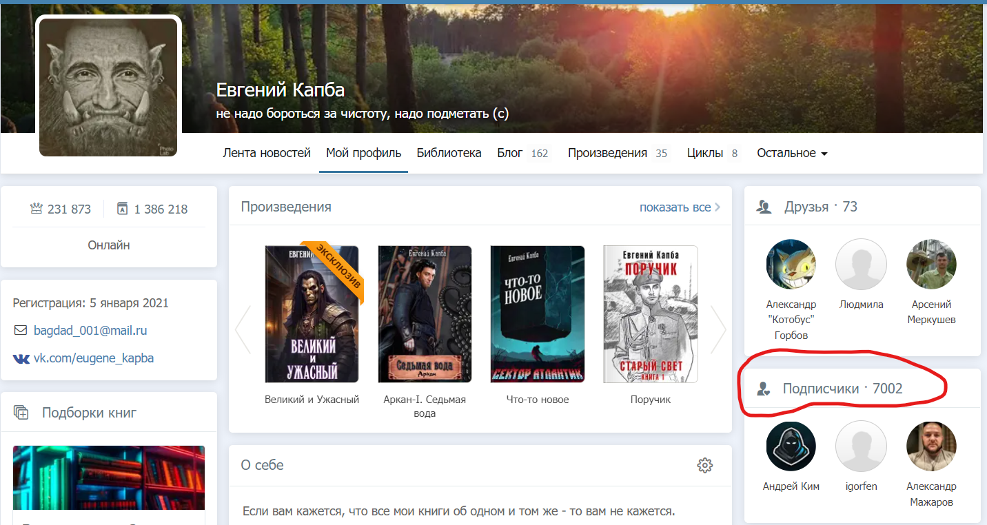 Автор: Евгений КапбаЭто некоторый феномен: при довольно скромном авторском рейтинге число подписчиков на этом профиле в Автор.Тудей сегодня перевалило 7000 человек!