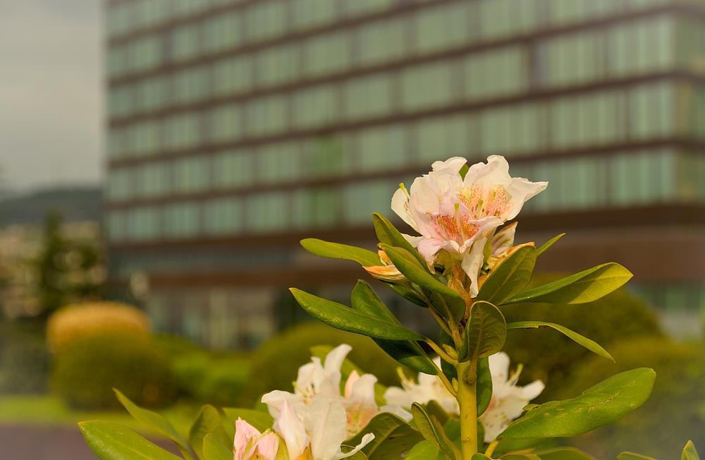 ... конечно же, это гипербола, потому как растет цветуечек на вполне себе клумбе, но на фоне стекла и камня мысли определенно навевает :)