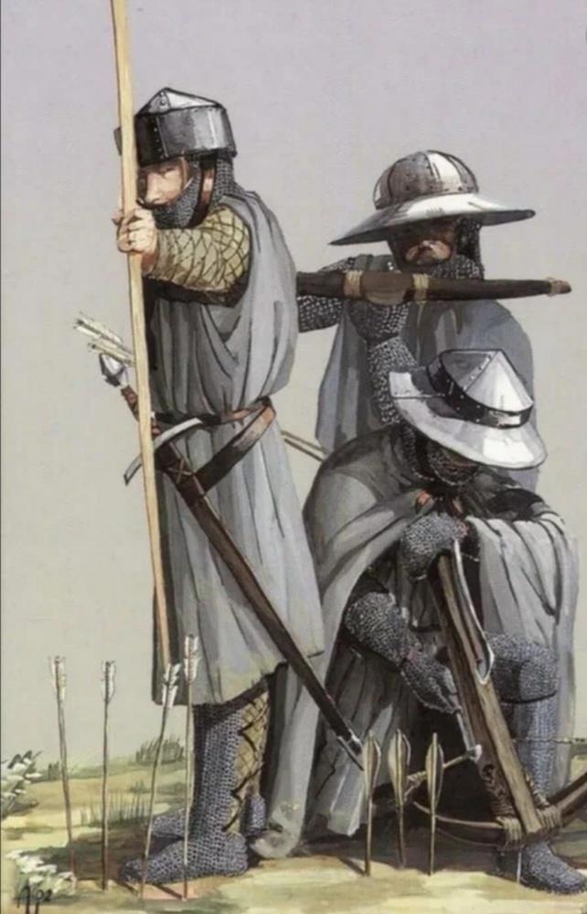 Но и копейщики. Понятно, что эти бойцы вряд ли умели строиться в фалангу или имели какую-то особую броню. Но сбив плотный строй, укрывшись ростовыми "червленными" щитами, ощетинившись копьями, эти ребята вполне могли за себя постоять. Копье - весьма убойное, но очень недорогое оружие, к слову... И копейщики на поле боя были щитом феодального войска - в то время как сами рыцари были разящим клинком.