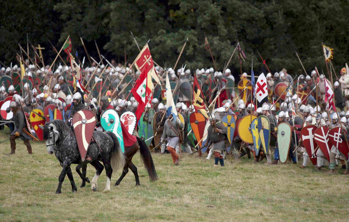 На заднем фоне норманнские рыцари - так, в принципе, выглядели и франкские, и валлонские, и фландрийские всадники-феодалы: