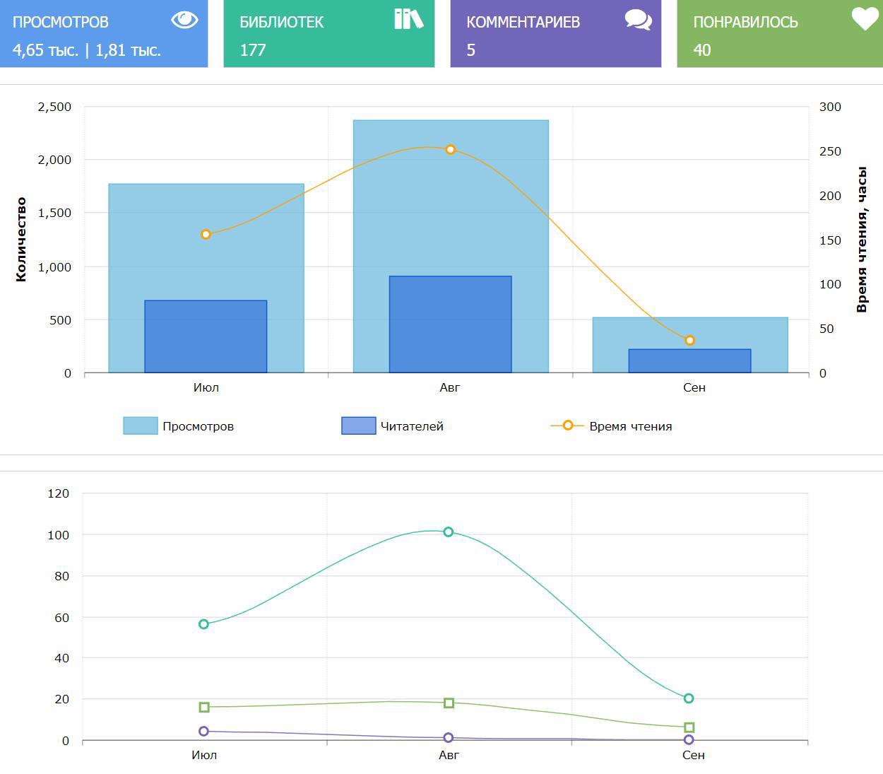 Статистика августа по сравнению с июлем в целом радует, просмотров и библиотек стало больше: