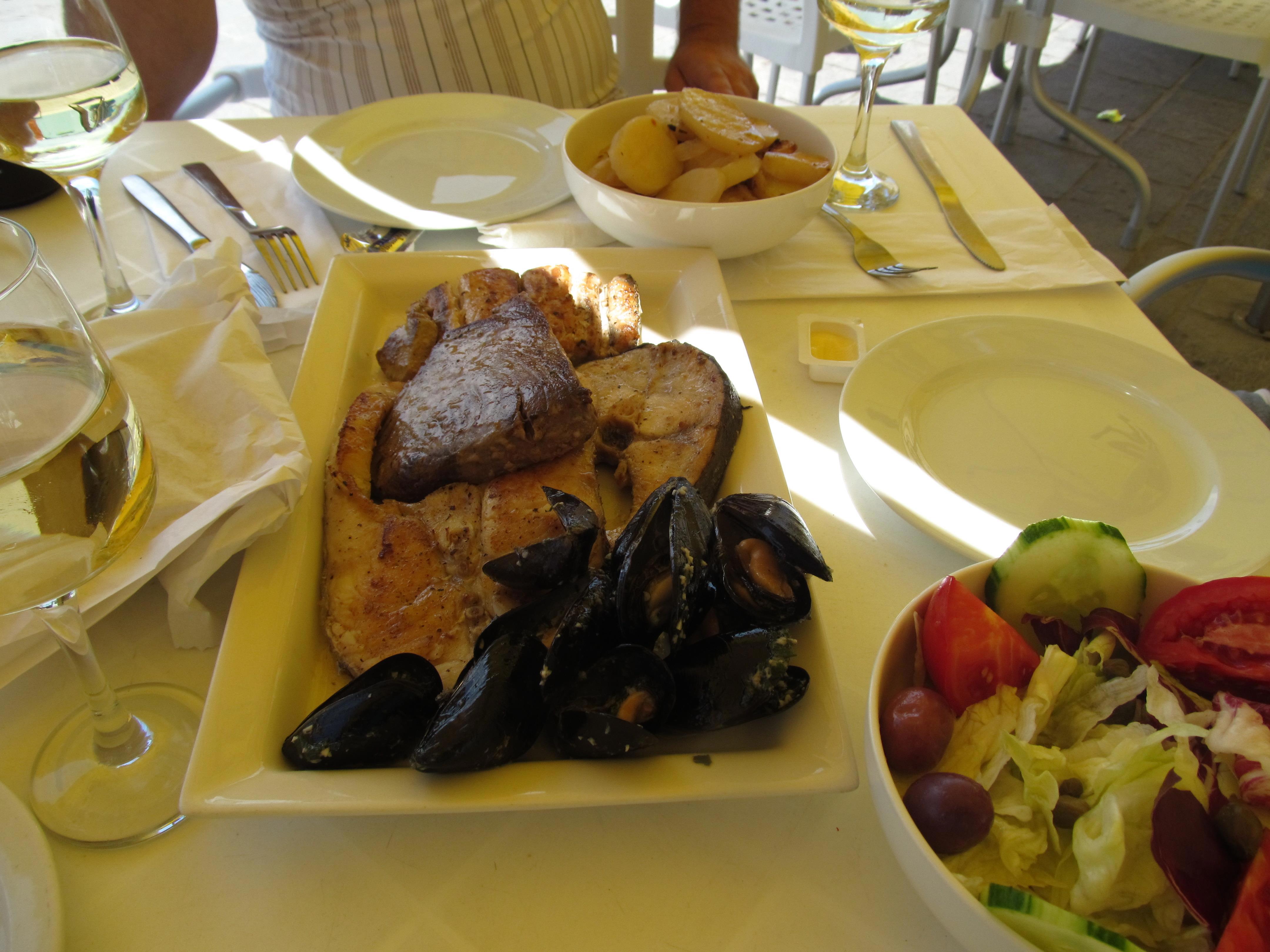 Рыбка да – на огромных блюдах! Конечно, пришлось еще вина заказать... А тут и автобус покатил – туристский. И эта вся толпа – по кафешкам... Хорошо хоть мы-то успели вовремя.