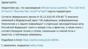 Неприятно, но менять что-то в своих произведениях я бы не стал, особенно из-за антиконституционного и противоправного закона и маразма властьимущих.