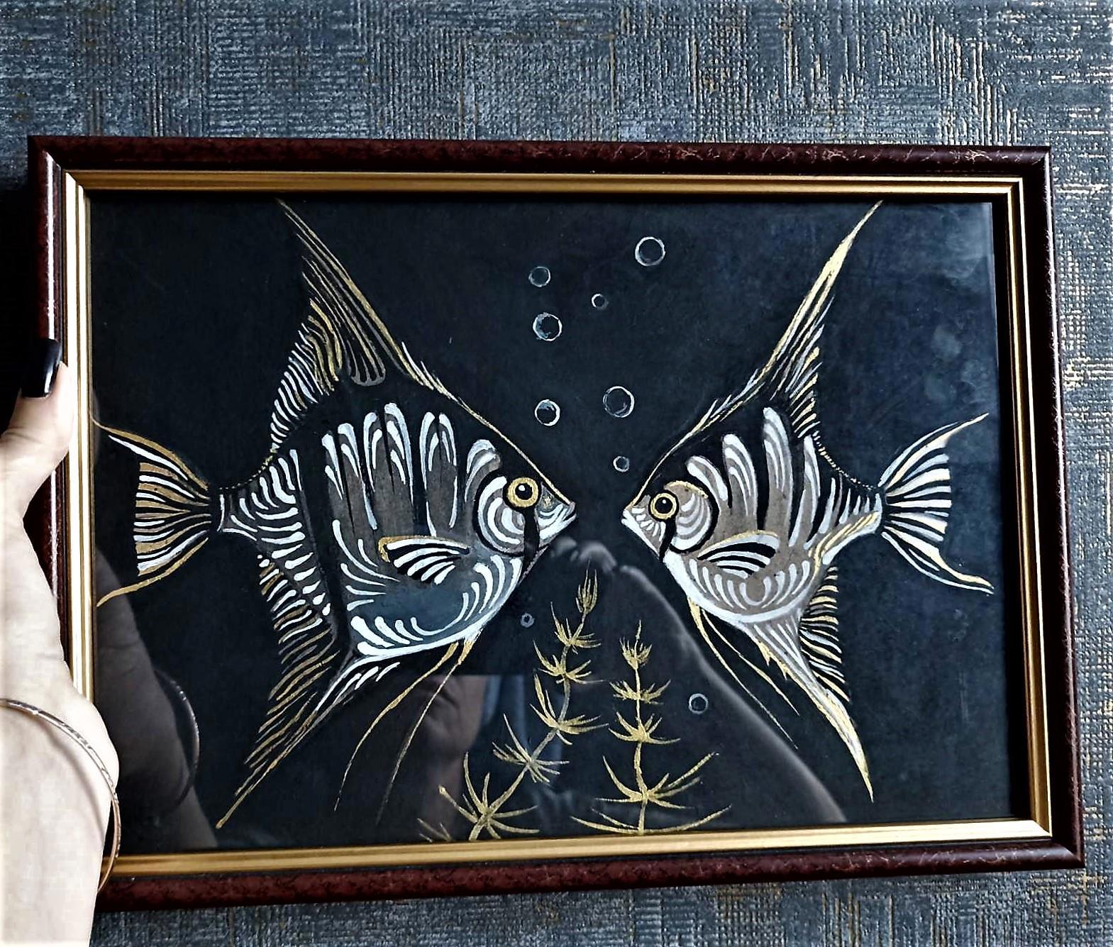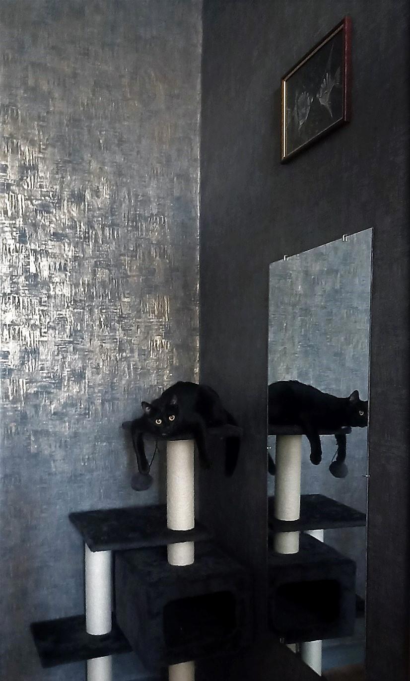 Комната получилась чёрной, в дополнение к оставленной картине с кошкой и совой, я намалевала