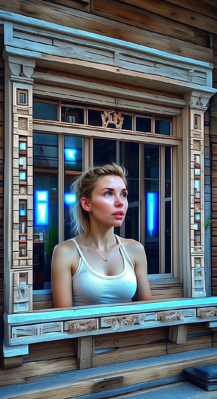 Например, по задумке девушка должна смотреть в окошко, а вышло, что она встроена в окошко