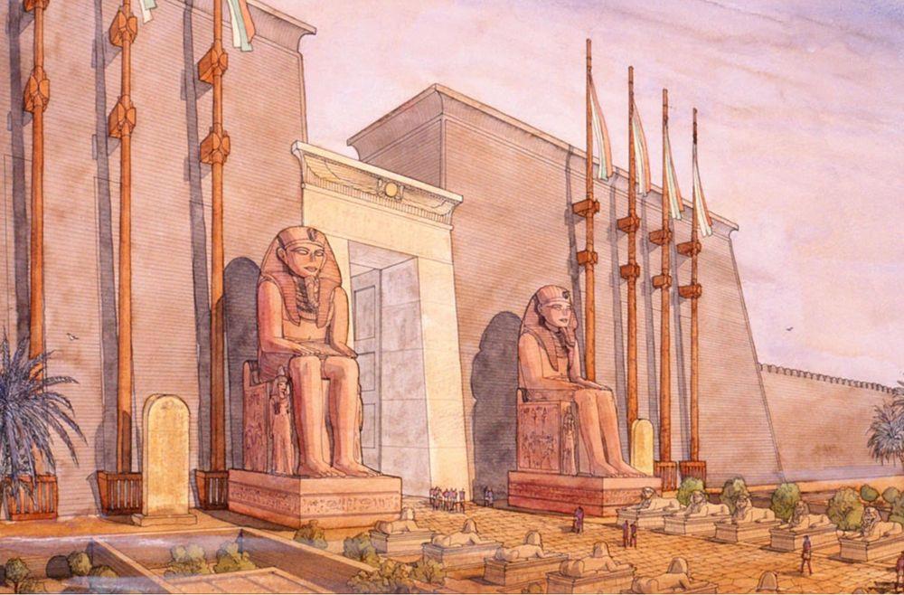 Статуи Великого царя Небмаатра, расположенные у "ворот" его Храма Миллионов лет. Фивы. Египет.