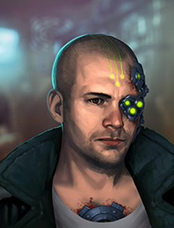 (Полного сходства, опять же, нет - магу противопоказаны кибер-импланты, так что игнорируйте окровавленные железяки на лице и груди портрета)