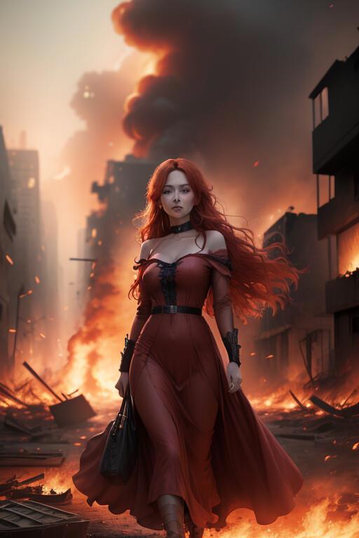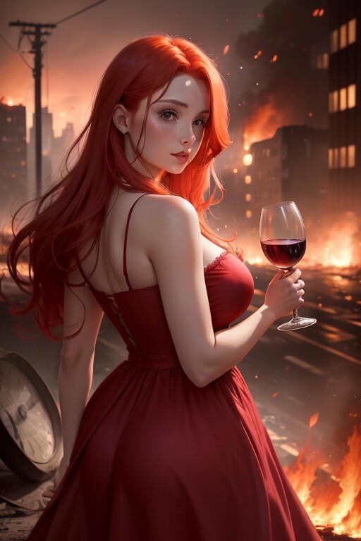 Ну и о нейросетях. Очередной эксперимент можно считать иллюстрацией к "Не ходи за мной", хотя нейронка упорно не желает рисовать платье нужного цвета - делает его под цвет волос :)