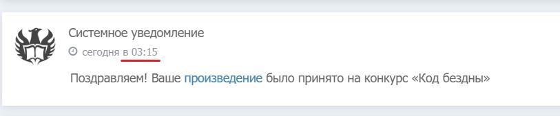 Подала на днях заявку на конкурс "Код бездны". И вот что в сообщениях сегодня утром увидела: