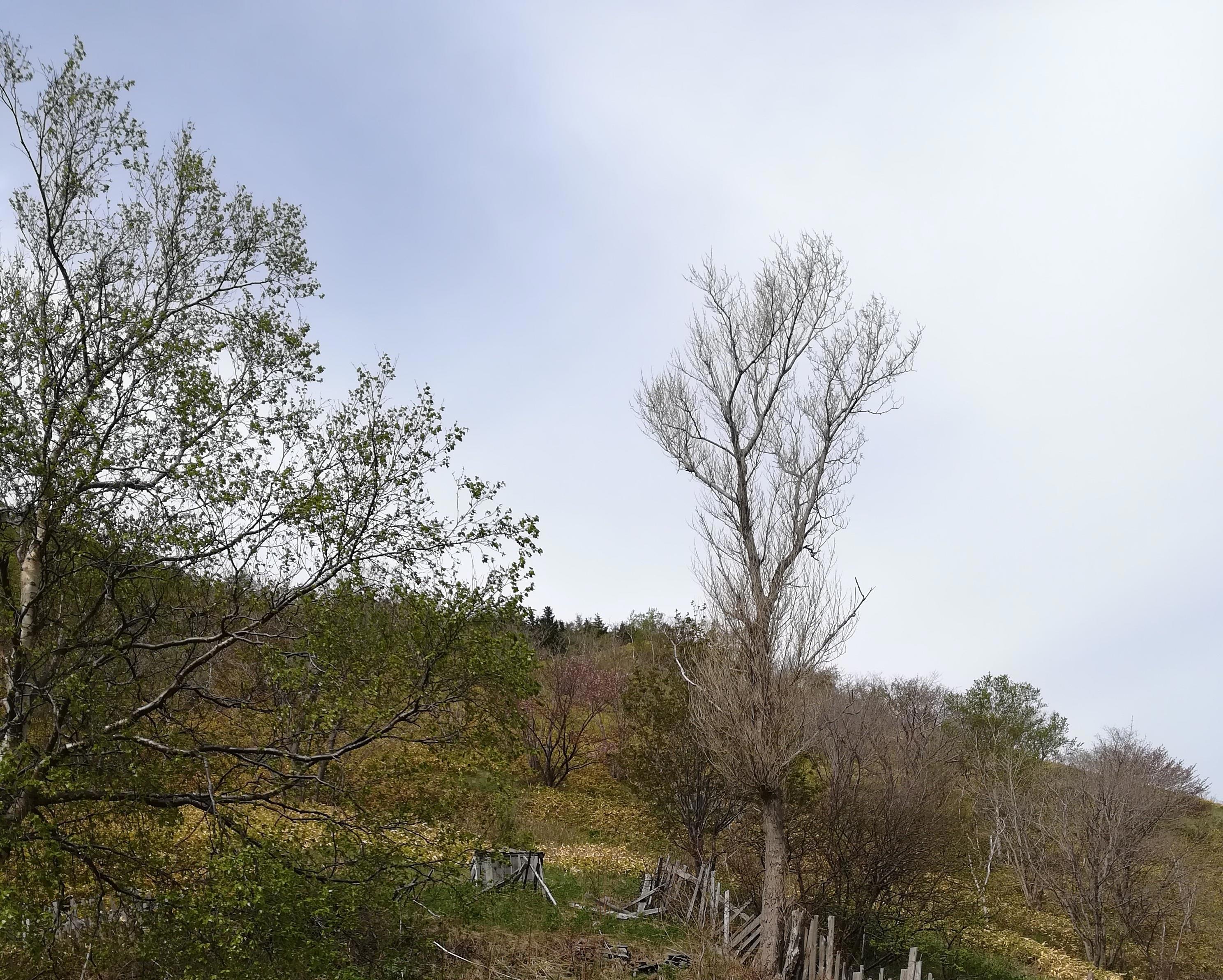 Слева по борту - берёза, справа по борту исполняя функции несущей конструкции забора - тополь. Сам забор местами отсутствует, как вы можете наблюдать:) Почему? А его после каждой зимы один фиг ломает и опрокидывает, так что в итоге нас задолбал этот сизифов труд и на сей участок ограждения мы забили. Да и не приходится больше перелазить через забор, рискуя порвать штаны на интересном месте или к чёртовой матери сломать сам забор (у меня получалось и то, и то).