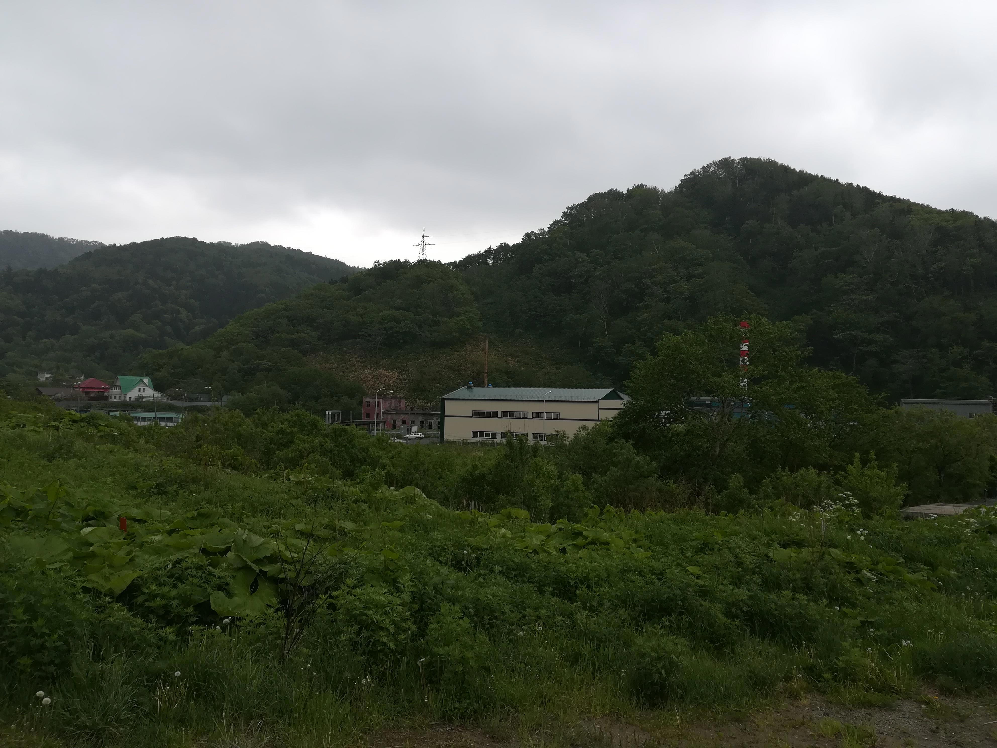 А это немного другой вид сопок слева, ну и в другой день, разумеется. Новенькое здание под сопкой - это кочегарка, новая, после землетрясения построили, и десяти лет нет. Ночью светится как стартовый стол космодрома на мысе Канаверал. Чёрно-красные руины чуть левее - кочегарка старая.