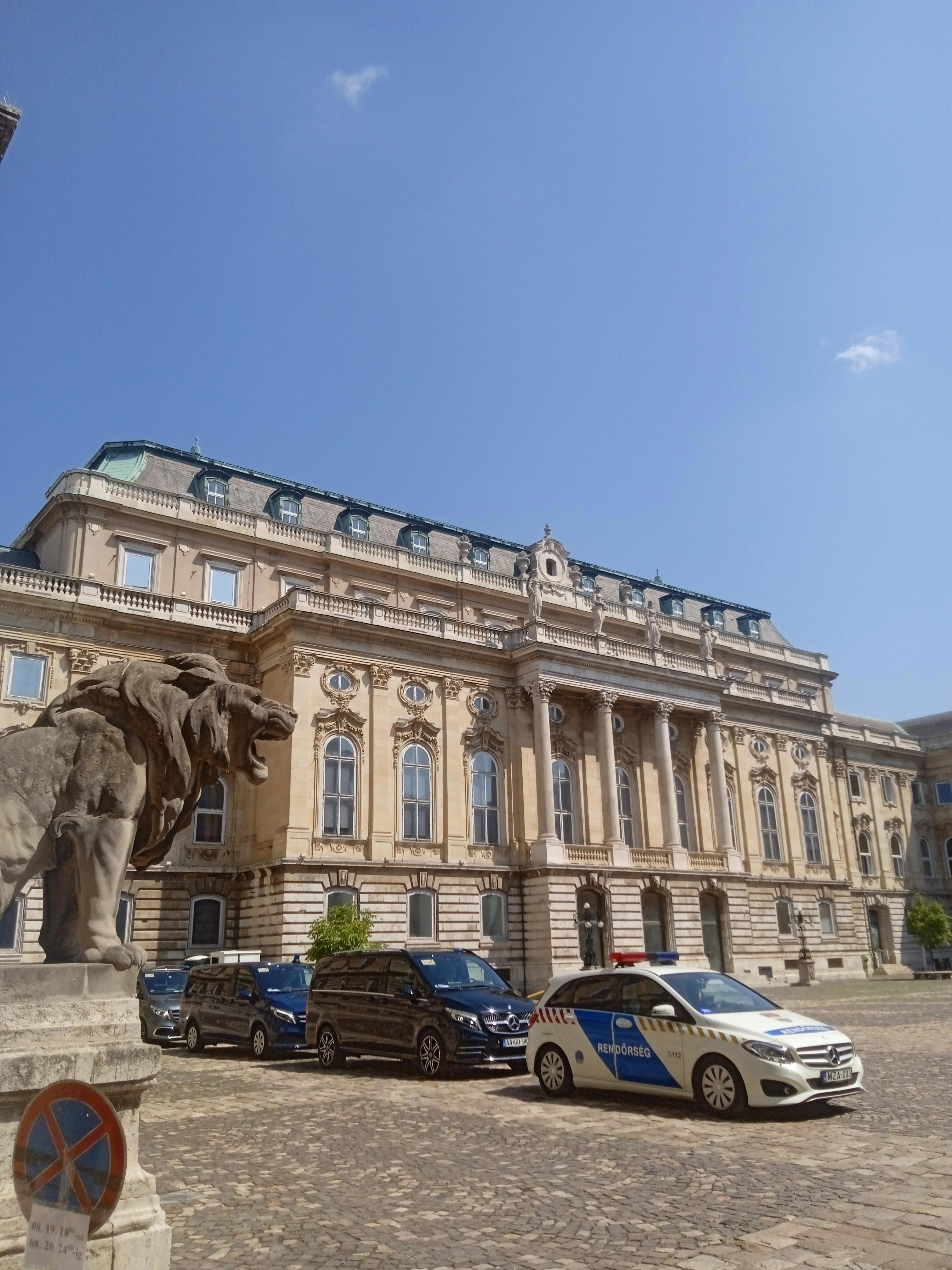 Главный вход, со стороны Дуная был закрыт (об этом мы знали еще несколько дней назад), зайти можно было лишь с задней части дворца, нам не пришлось обходить его. Мы как раз шли с нужной стороны