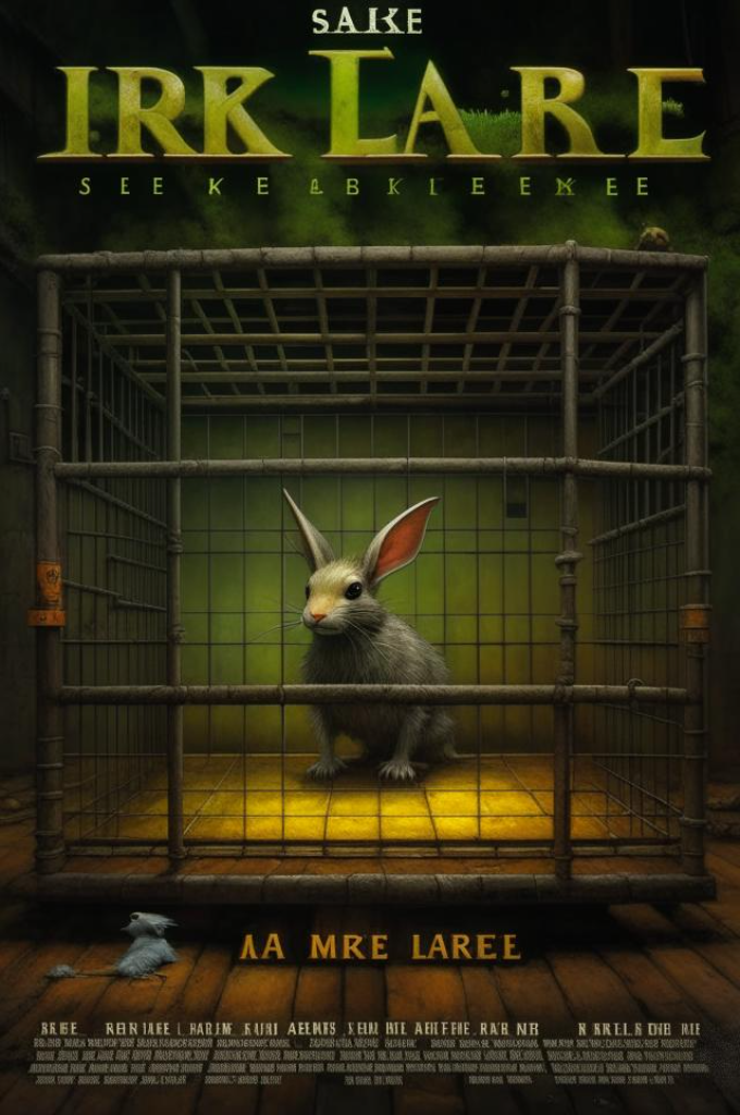 Ну и теперь мои работы! «S.T.A.L.K.E.R. Кроличья клетка». Конечно, нейросеть поняла буквально про кроликов и клетку.