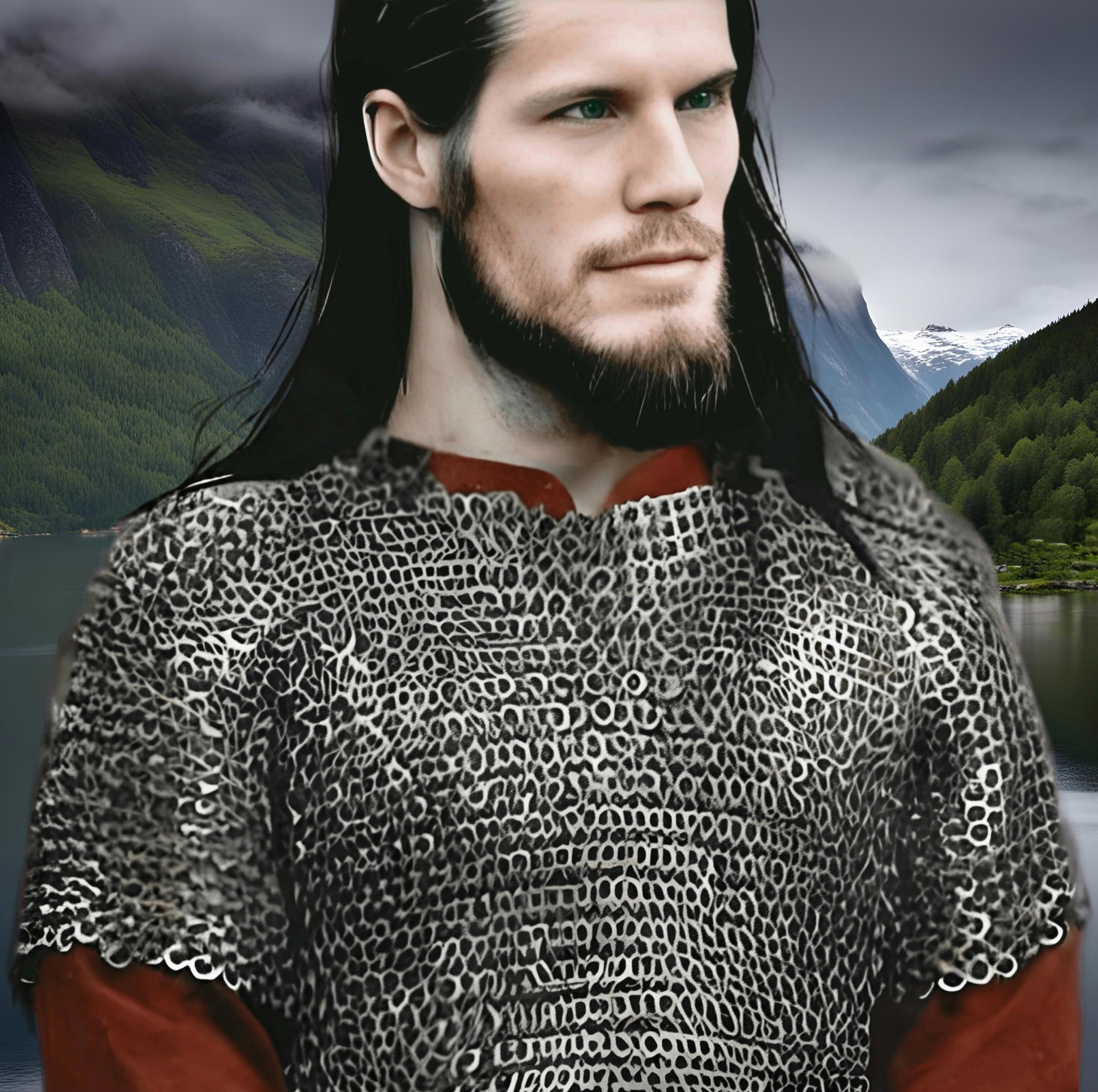 Харальд стоял полубоком и рассматривал реконструированные скандинавские фибулы. Он был высоким, атлетически сложенным (через льняную рубаху были видны мышцы), зеленоглазым; у него были длинные тёмно-русые волосы и такого же цвета борода.