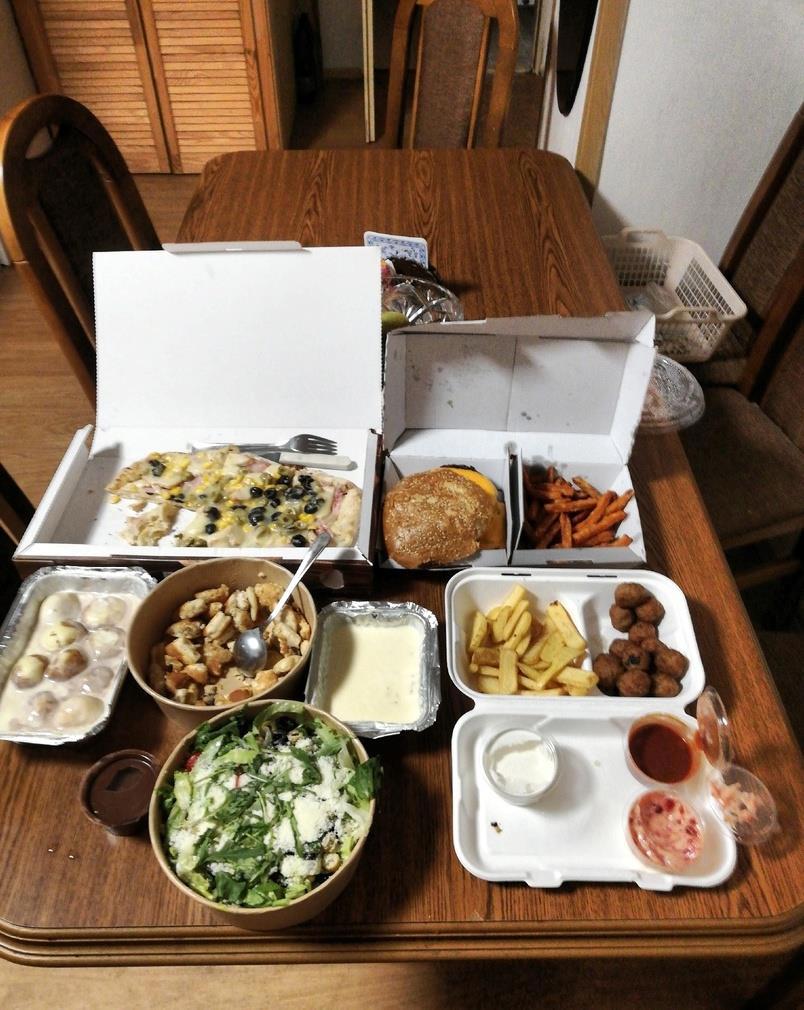 Поэтому я вся в печали заказала кучу жратвы на все выходные из пиццерки в Жатце ( 16км, зато там много чего есть, даже вареники с клубникой, а вот пицца у них дрянь).