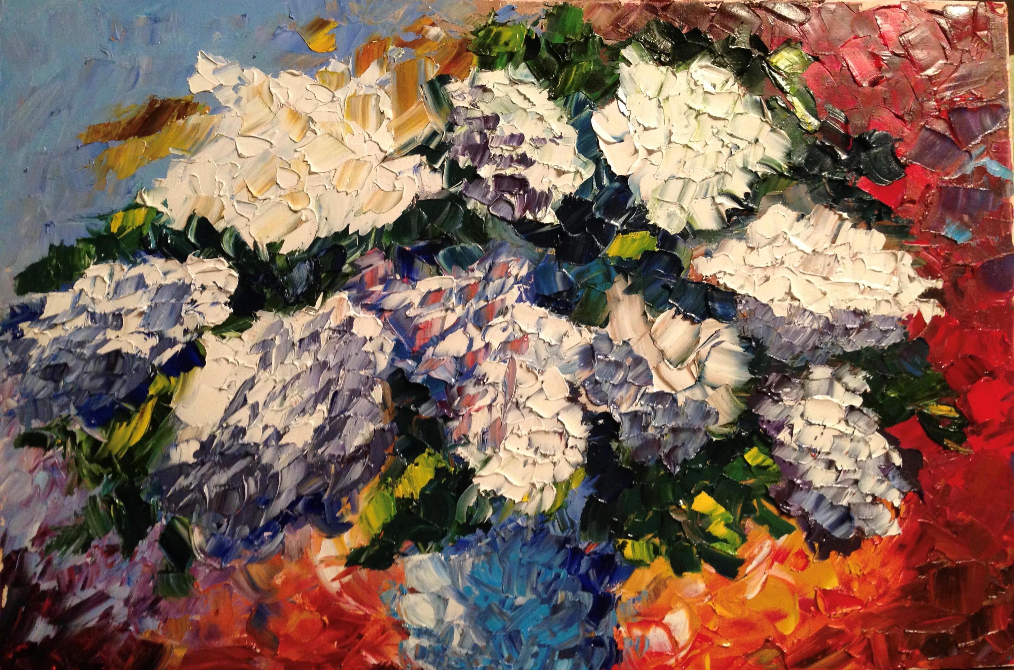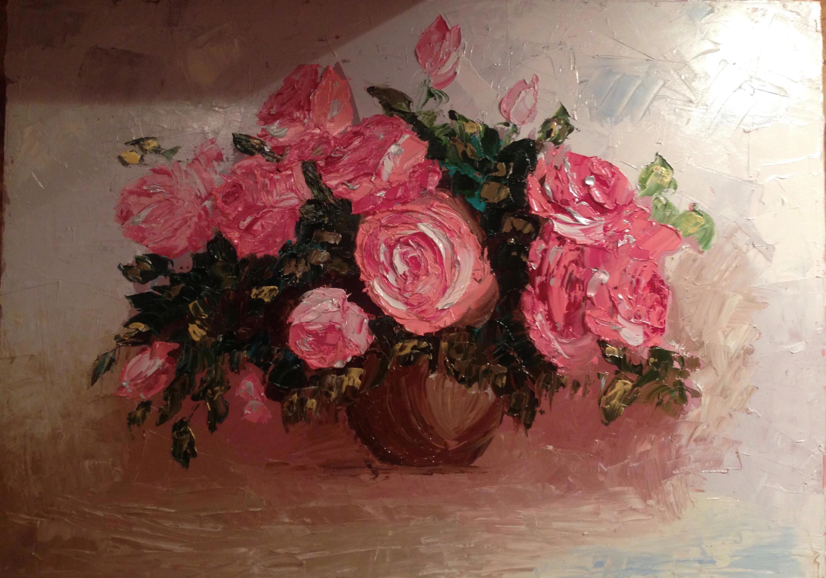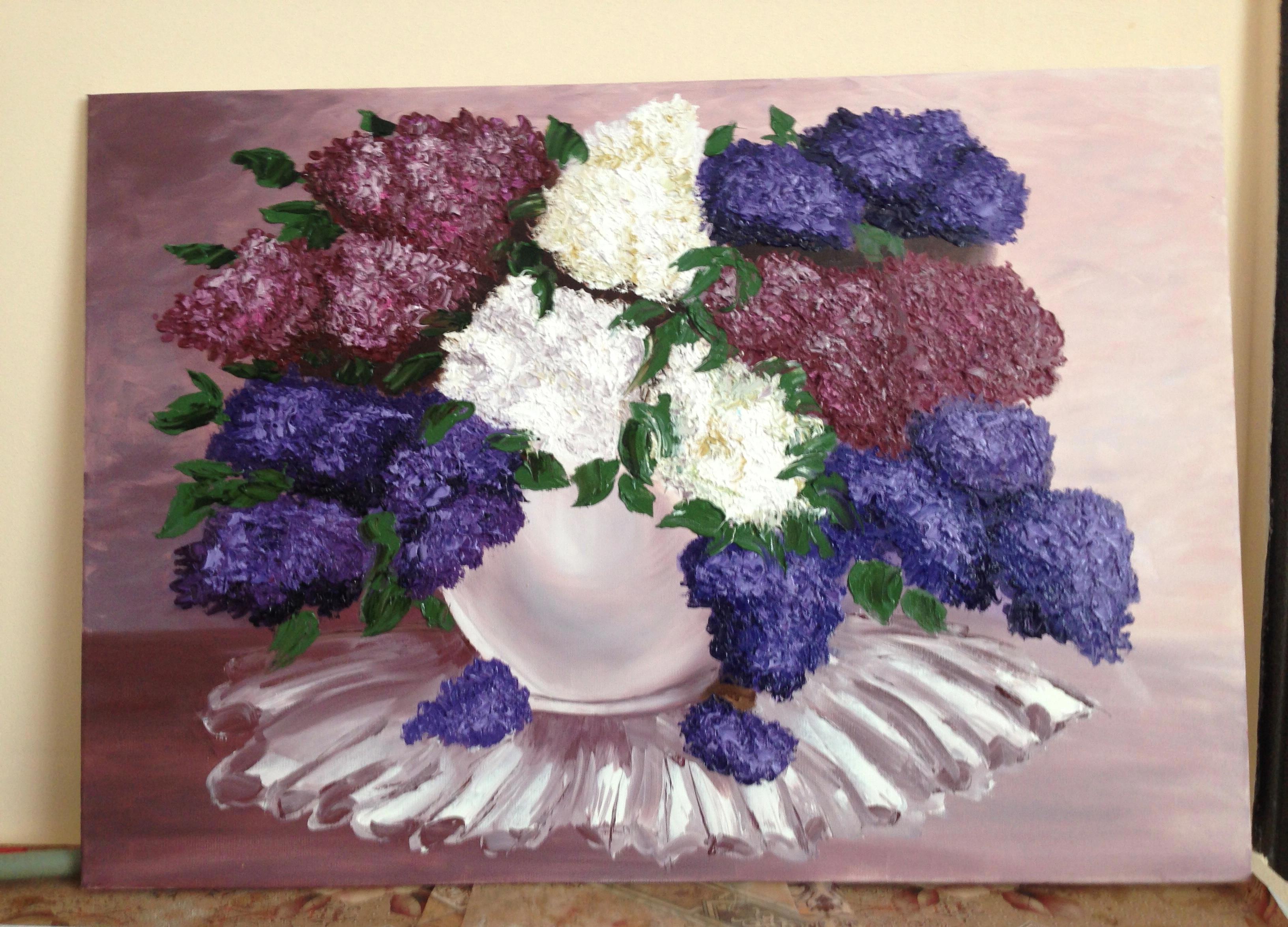 Когда-то давно я внезапно для себя увлеклась живописью маслом. В основном цветочки всякие срисовывала, а потом раздаривала знакомым. С тех пор сталось несколько фотографий работ, вот они:
