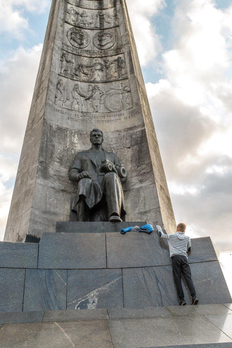 …Символично и размещение бронзовых фигур на монументе: зодчий обращён к древнему Успенскому собору, воин смотрит на оборонительные Золотые ворота, рабочий – в восточный промышленный район города.