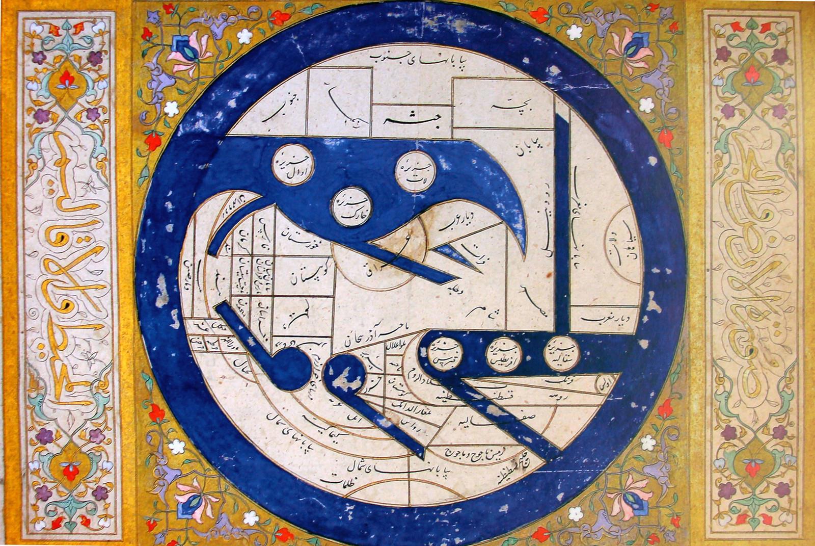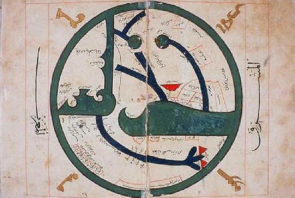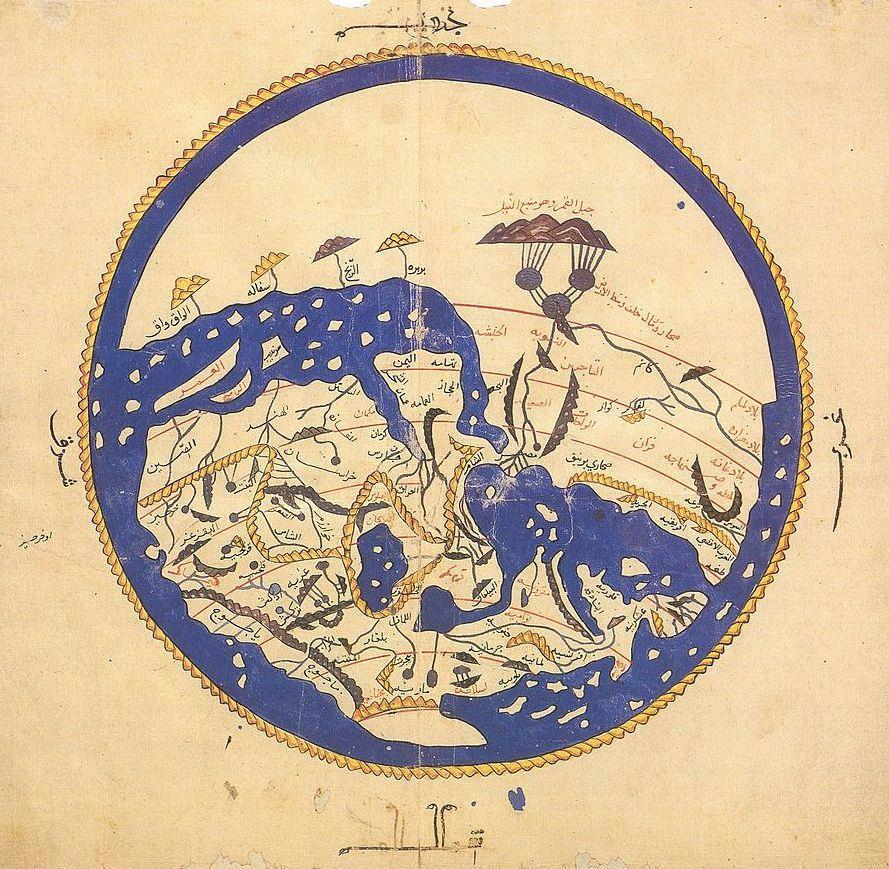 Здесь изображён мир согласно «аль-Идриси». Говорят, что на ней север внизу (хотя мне не полегчало от этого уточнения):