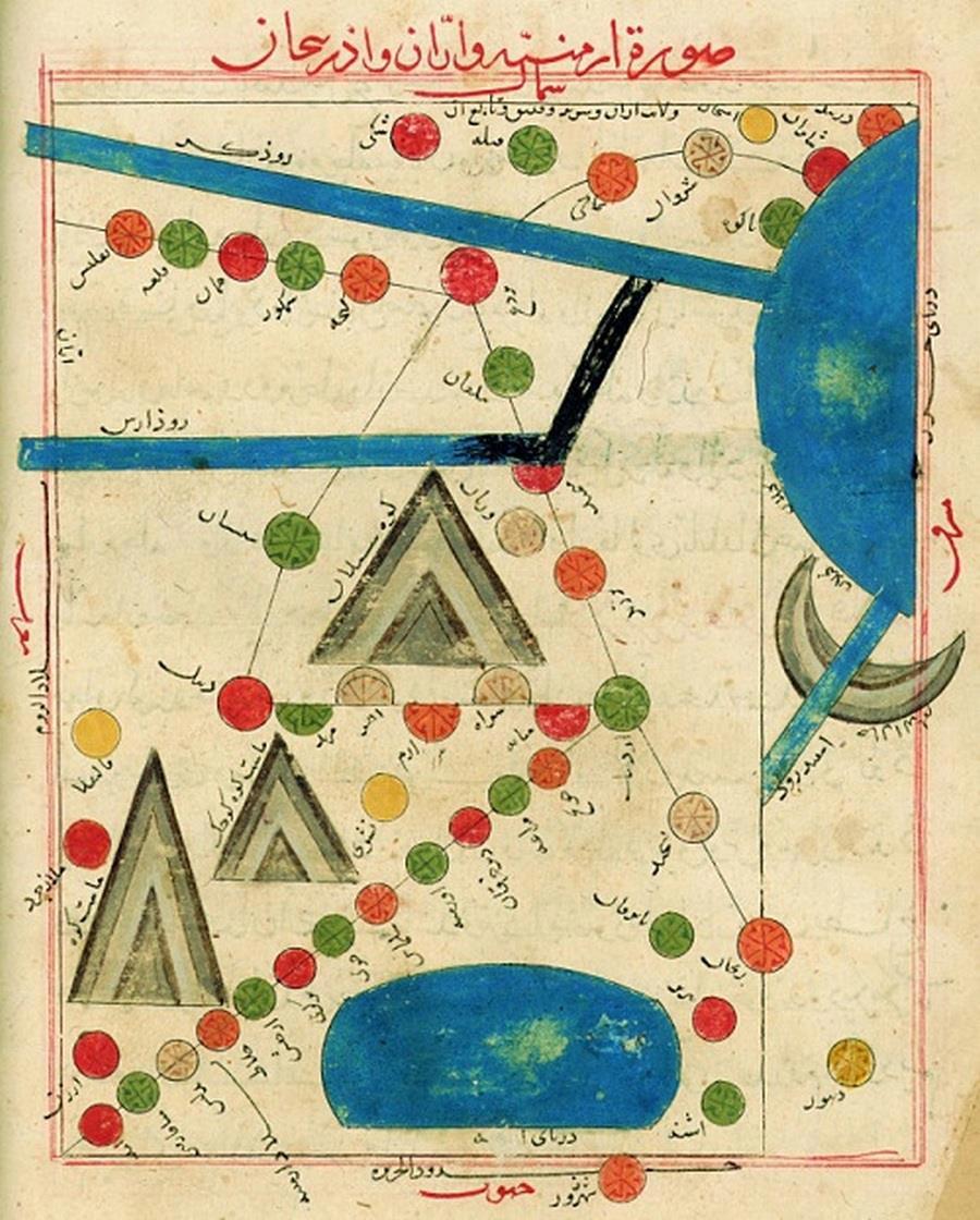 Список арабских «источников» солидный: арабский географ Аль-Балхи (850 – 934 гг), его примерно в 930 г. творчески переписал Аль-Истархи, Ибн-Хаукаль в 988 г написал «Книгу путей и государств», далее Идриси в 1154 г., Абульфед 1330 г., Шамседдин Димешки 1320 г. ну и тд. Звучит серьёзно… если не учитывать, что изучались тексты, разумеется не по первоисточникам, а по книжкам, самая старая из которых напечатана в 1896 году. Но не будем придираться, а просто почитаем.