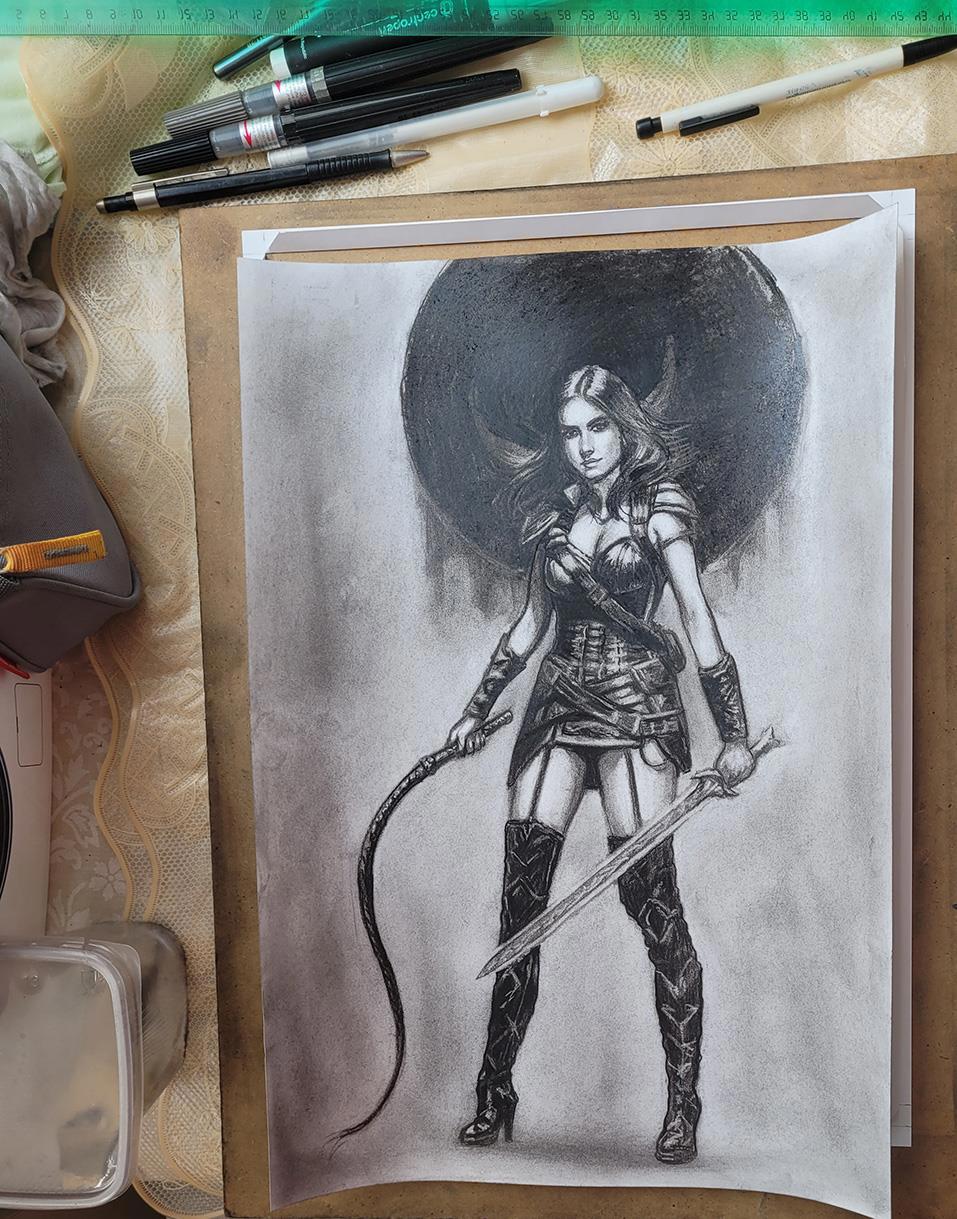 Следующий рисунок хочу попробовать сделать тушью в более комиксовой технике.
