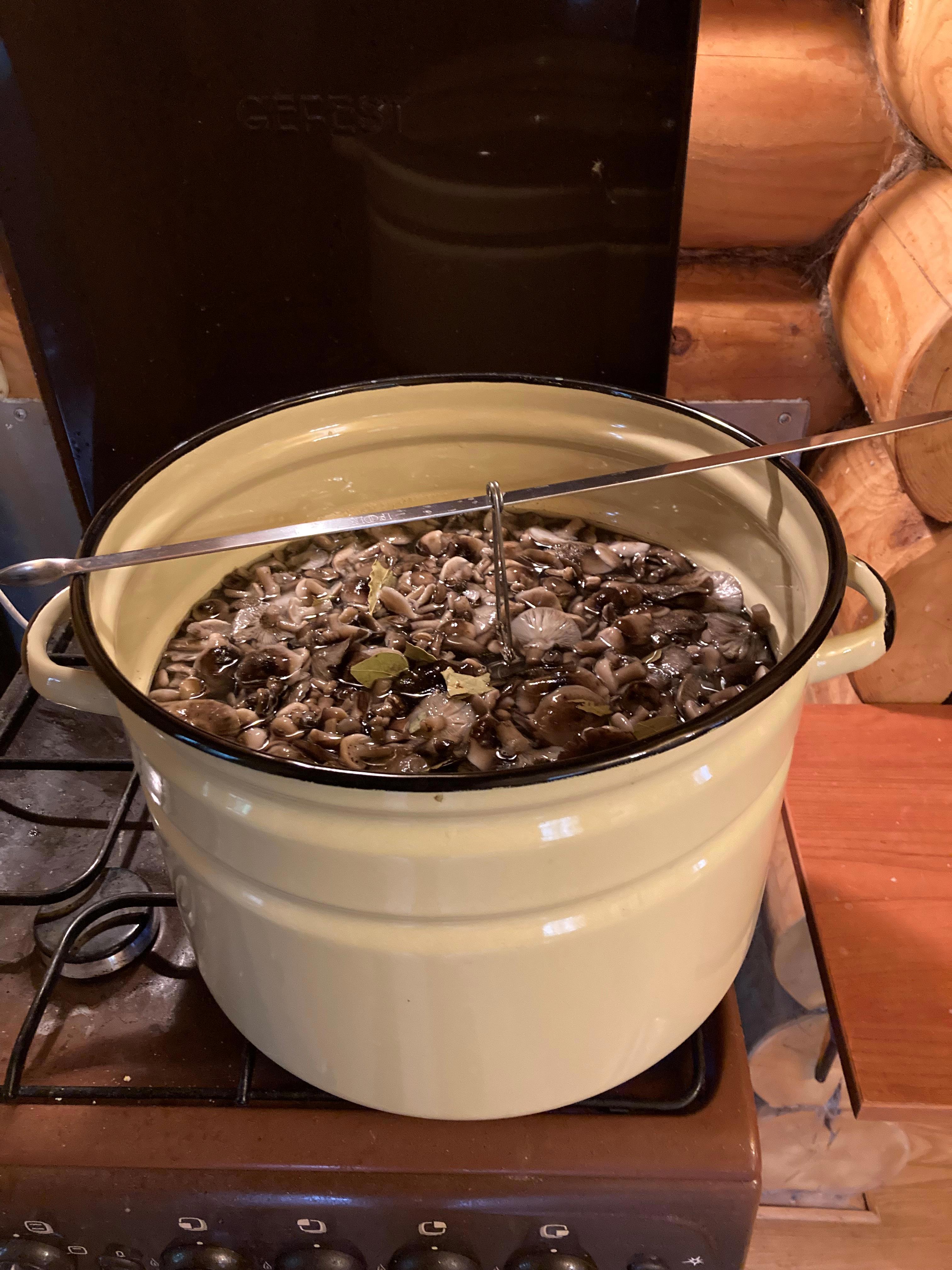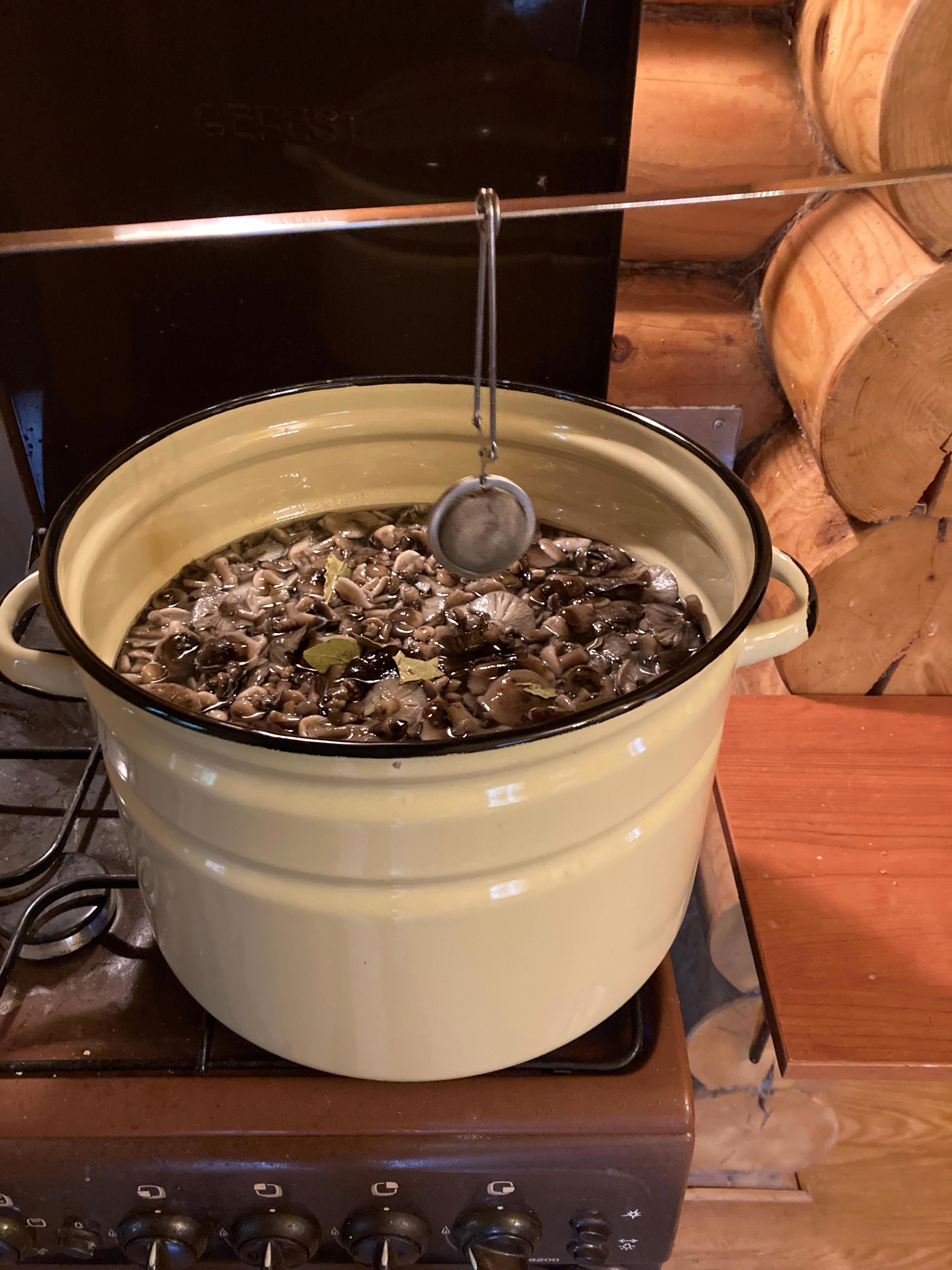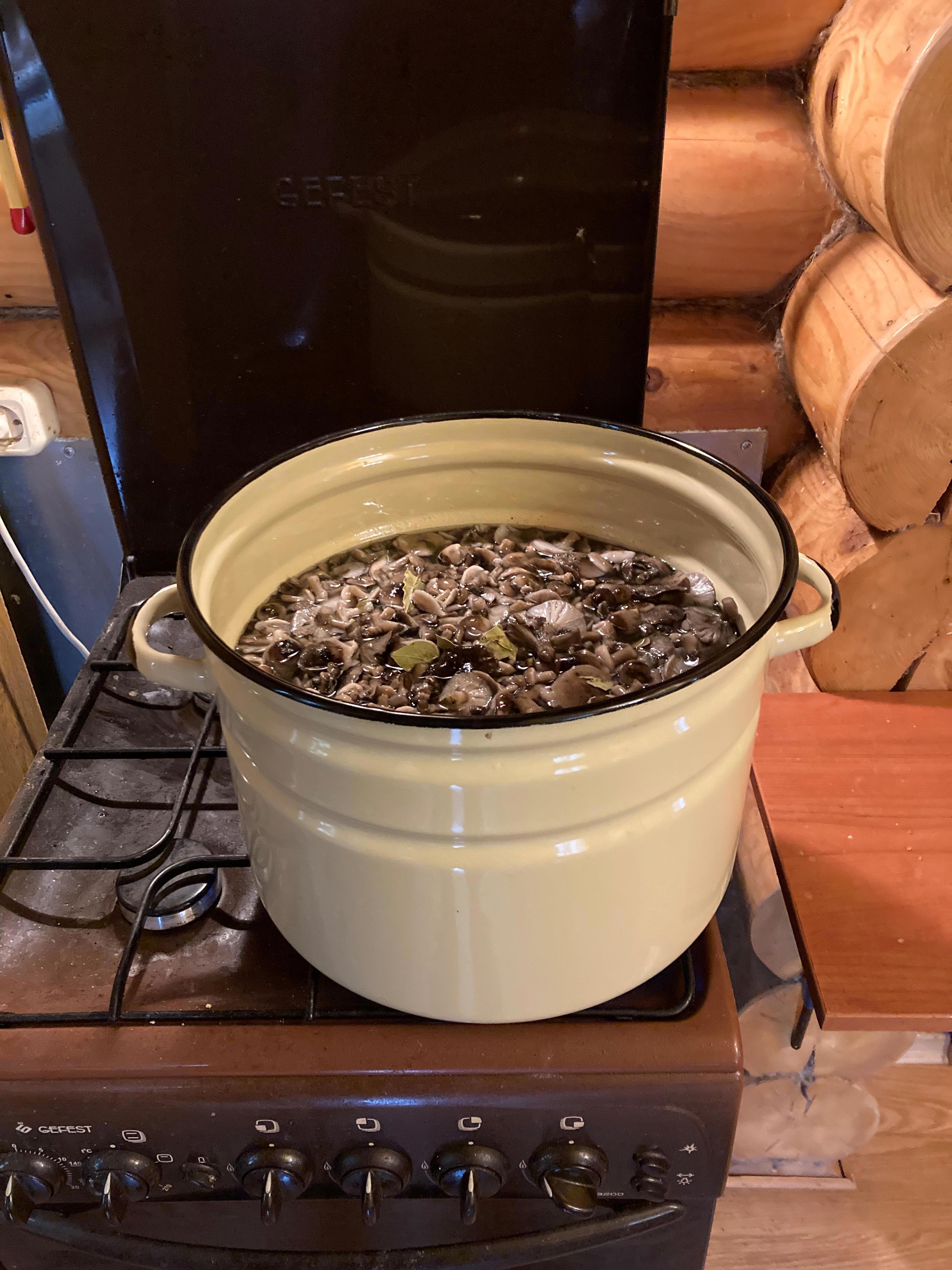 4) Снова кладем грибы в кастрюлю, заливаем водой. Добавляем соль - две столовые ложки без горки на литр воды.