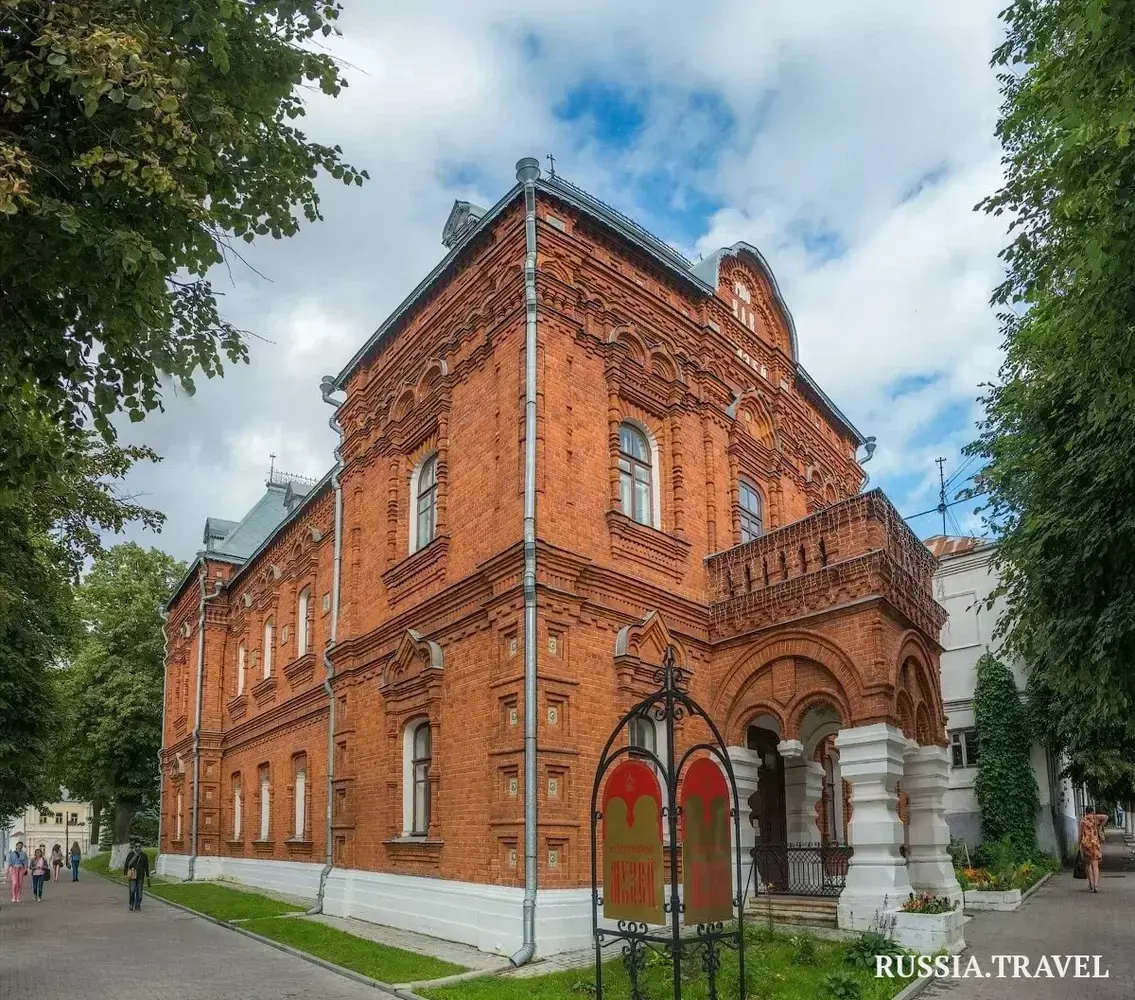 Это нарядное двухэтажное здание музея с высокой четырёхскатной кровлей выполнено из красного кирпича. Оно имеет план вытянутого прямоугольника — похожее на древнерусский боярский терем или на ларец для хранения драгоценностей.