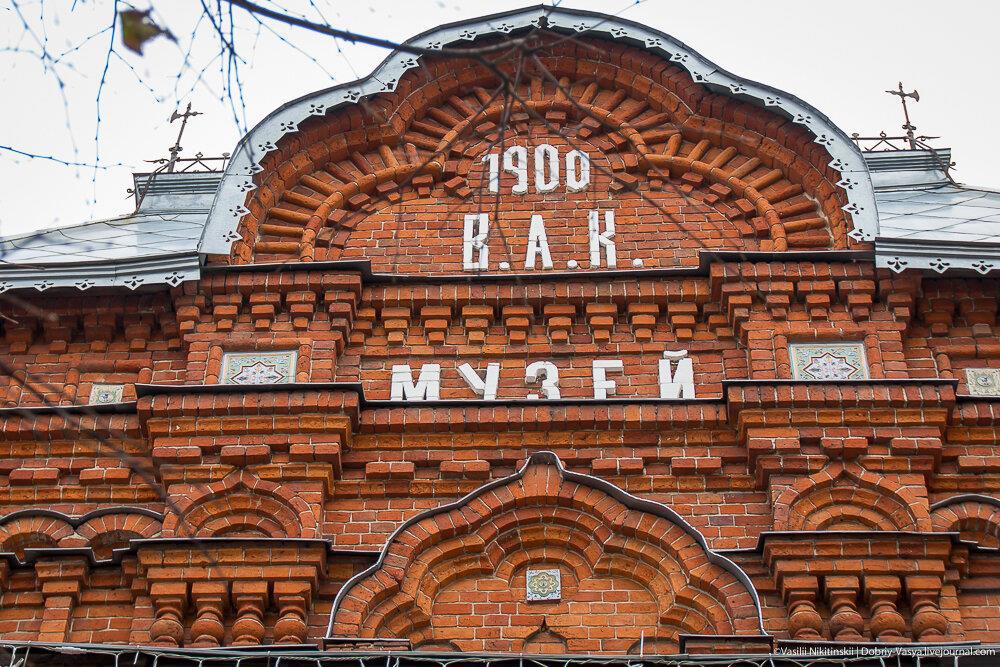 На крыше, по главному фасаду, имеются четыре слуховых окна и фронтон с фигурным завершением со стороны главного входа. На фронтоне выложено кирпичом: «1900, ВАК». Ниже, на карнизе: «Музей». На коньке кровли установлена металлическая ажурная решётка. Водосток осуществляется по трубам сложной конфигурации. Перекрытие нижнего этажа деревянное, плоское с опорой на круглый металлический столб в центре зала, перекрытие верхнего этажа — сводчатое. Этажи соединены парадной двухмаршевой лестницей.