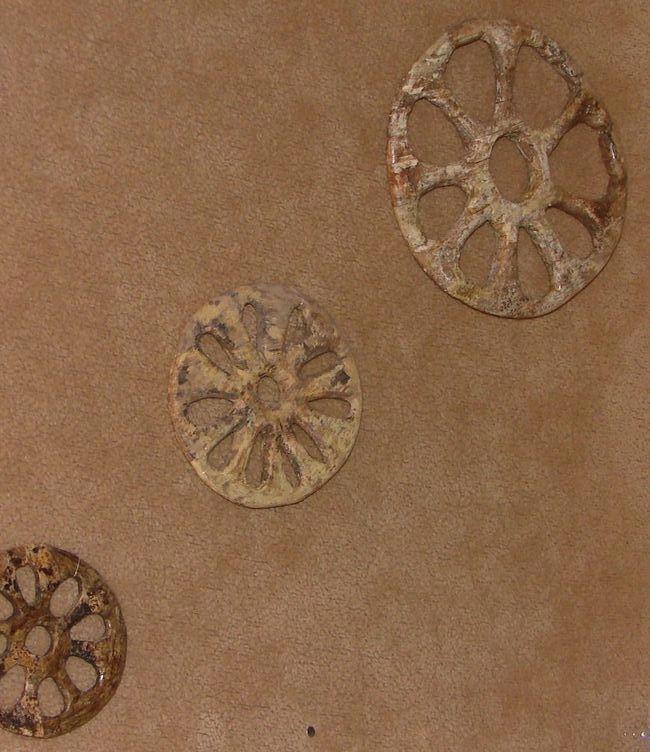 Не меньшую, если — не большую, интригу с возможным предназначением всегда вызывали у меня, как, думаю и у всех любителей древней протославянской истории, и абсолютно уникальные четыре диска ритуального (символического) характера -- диаметром несколько сантиметров, сделанных из бивня мамонта.