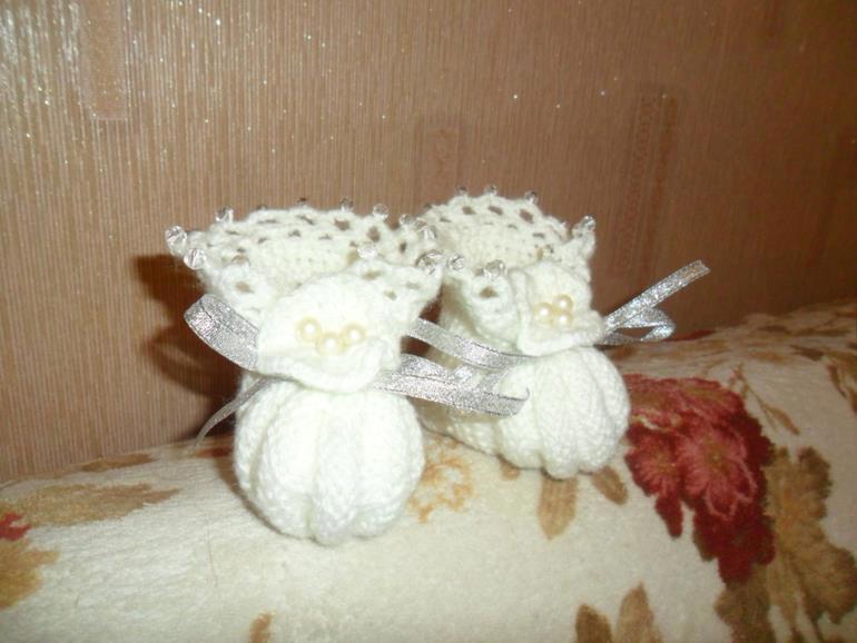 Автор: Ари ВидерчиНедавно мои хорошие друзья стали родителями. Малыши, особенно чужие, растут очень быстро. И меня уже пригласили в гости. Дарю я обычно, если специально ничего не заказывают, конверт с денежкой и какую-нибудь мелочь. В этот раз подруга попросила белые пинетки для крещения.