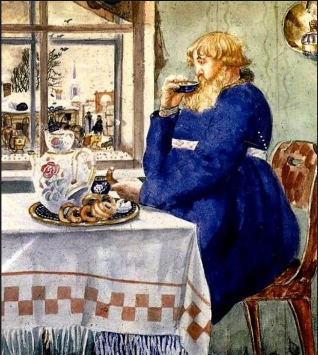 Я большой любитель чаёвничанья, даже в живописи. Вот, например, прекрасное от Бориса Михайловича Кустодиева.