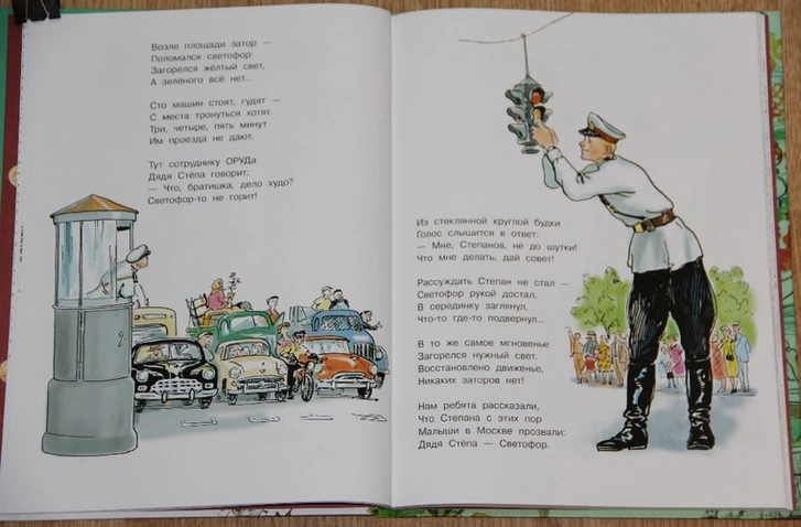 Я же, как обычно, уйду в автомобильную тематику даже здесь: поражает то, как при всей детскости этого рисунка ("Дядя Стёпа-милиционер", 1955) отчётливо различимы "ЗиМ", "Москвич-402" и "Шкода-1200" в первом ряду и троллейбус МТБ-82 и ГАЗ-51 - во втором. В крайнем справа грузовике, правда, немного засомневалась: не УралЗиС-355М ли это, но его в 1955 году ещё не было.