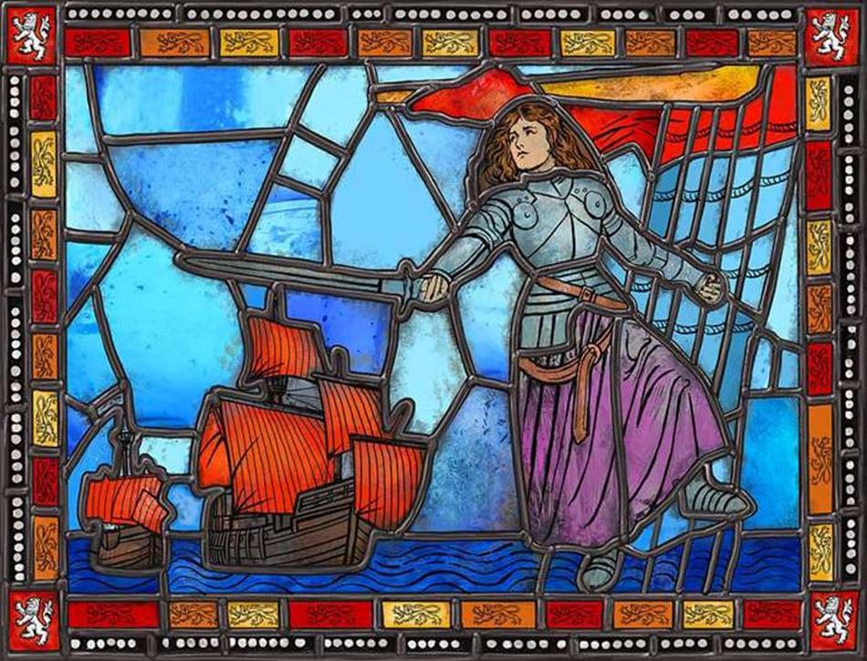 К тому моменту болтаться по побережью Франции ей уже порядком надоело. Да и разрушила она все, что только могла. Она к тому же была умнее многих организаторов народных движений, понимая, что все они приведут ее к виселице – это в лучшем случае. В средние века за такие дела казнили так люто, что лучше даже не вспоминать. А у нее дети, кто будет их растить? Так что никаких народных восстаний, только послушные, хорошо оплачиваемые наемники. В общем, она подсобрала деньжат, благо замков и дворцов ее армия разорила немало, и прикупила три военных корабля, оснащенных по последнему слову боевой техники. Наемников она распустила, а набрала три команды из самых отчаянных сорвиголов. Не устояла, все-таки женщина стремится к эстетике, и покрасила свои фрегаты в черный цвет, а паруса в кроваво-красный. Черные корабли с красными парусами сами по себе наводили ужас на мореплавателей. Особенно в солнечную погоду. Золотом на борту своего корабля Жанна приказала написать «Возмездие». И начала в натуральном смысле пиратствовать. Капитаном «Возмездия» стала сама. Это говорит о том, что молодость девушки возможно прошла не так уж и безмятежно, раз она знала такие тонкости морского дела, что могла капитанить. Да еще и команду свою бравую держать в железном кулаке. Надо сказать, что пираты в те времена не были чем-то из ряда вон. Пиратствовали очень многие, в том числе и вполне уважаемые господа, но вот чтобы кто-то мстил королю – это было внове.