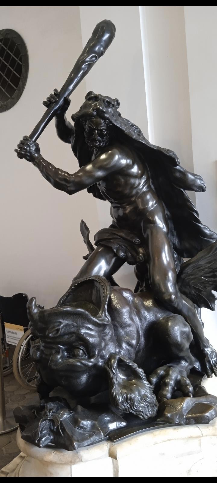 По дороге увидела на доме лепных мужика с дамой, само собой одетых в основном в ботву. Сидят над входом в здание, любезничают, а между ними - кувшин перевёрнутый, и типа вода из него льётся. Тут я над этим зияющим влагой кувшином и призадумалась... Аллегория или намёк? Неужели у меня наступил этап прозрения? Ура, я стала понимать античное искусство!